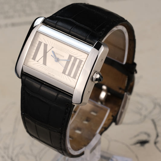 Rare 2003 Cartier Large Divan Automatic, 18k White Gold, special edition dial