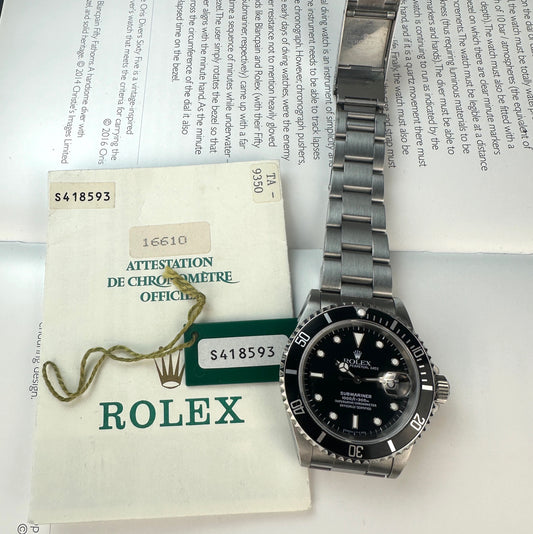 1993/94 Rolex 16610LN Submariner Date with papers and hangtag