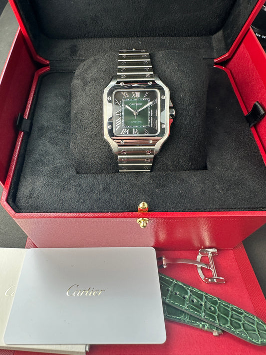 2023 Cartier Santos Medium Green Dial WSSA0061, Full Kit