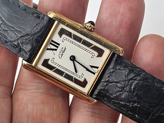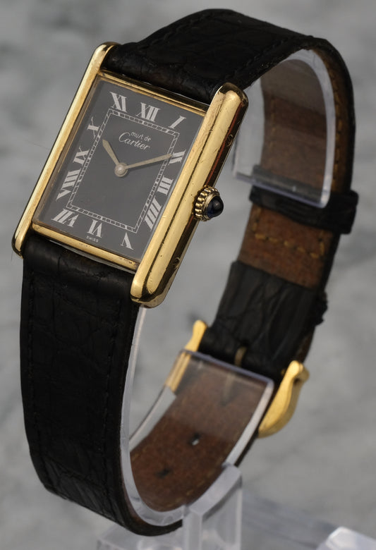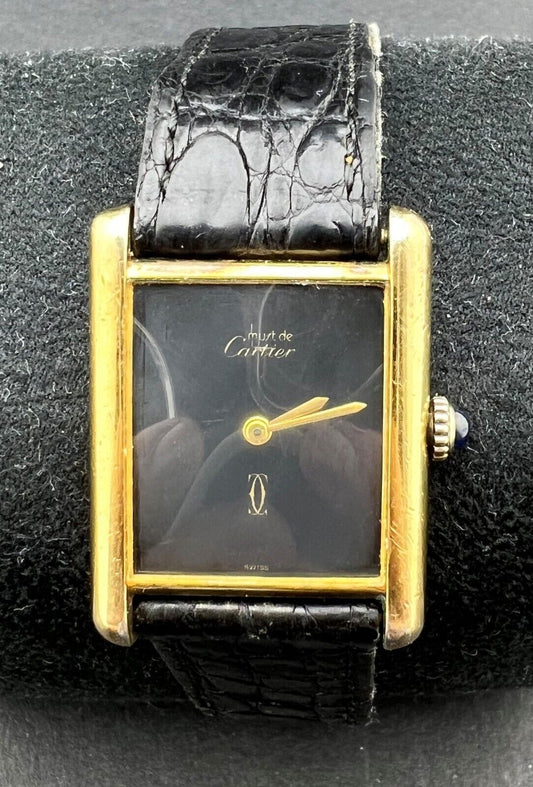 Vintage Cartier Tank Must, gold plated silver, manual wind, original strap