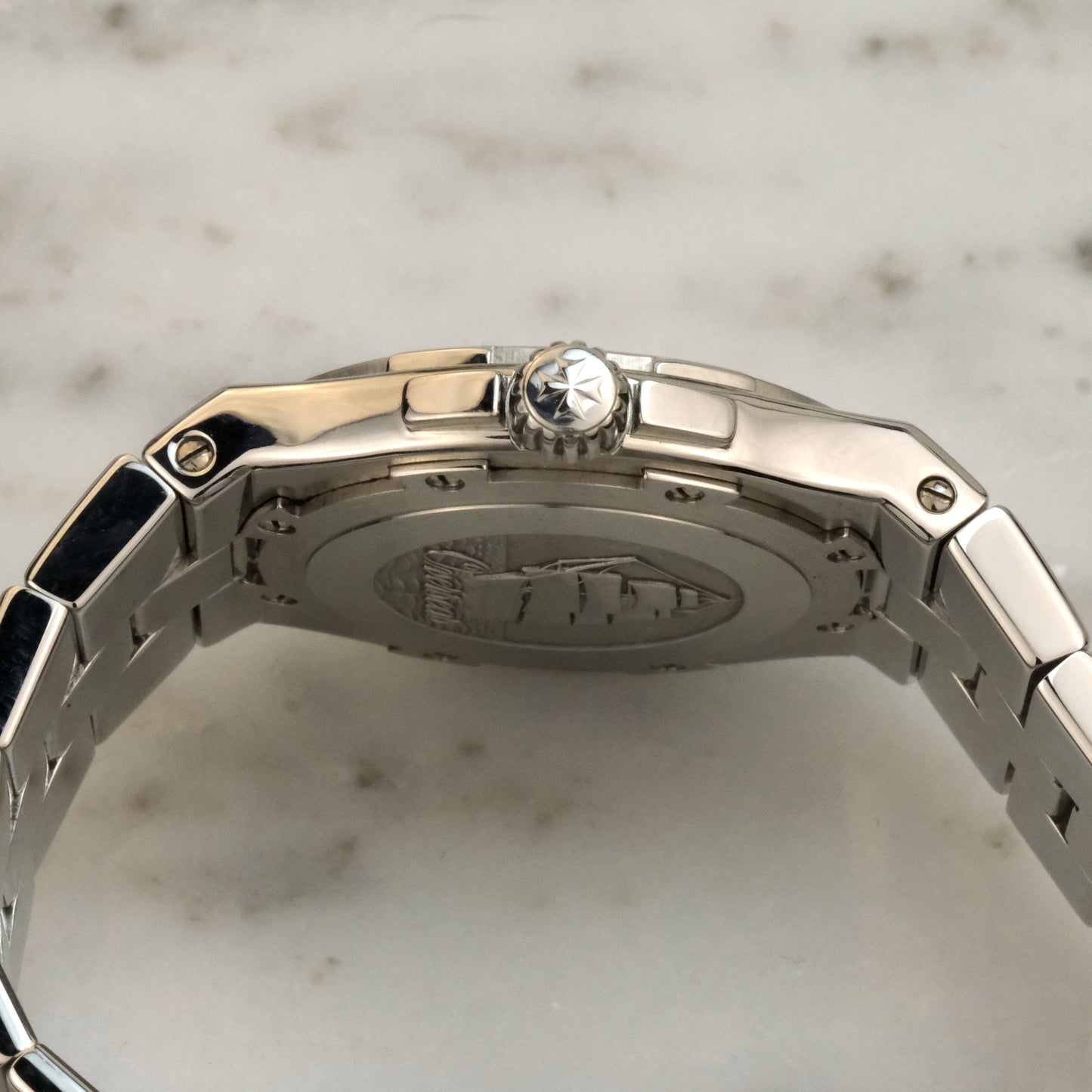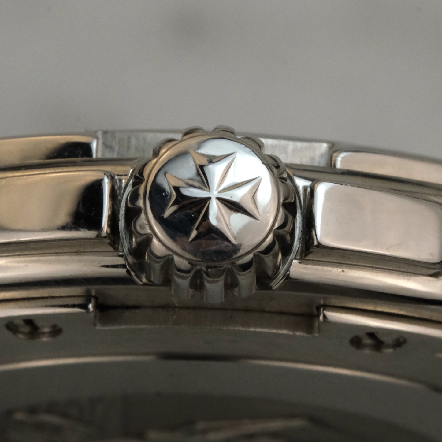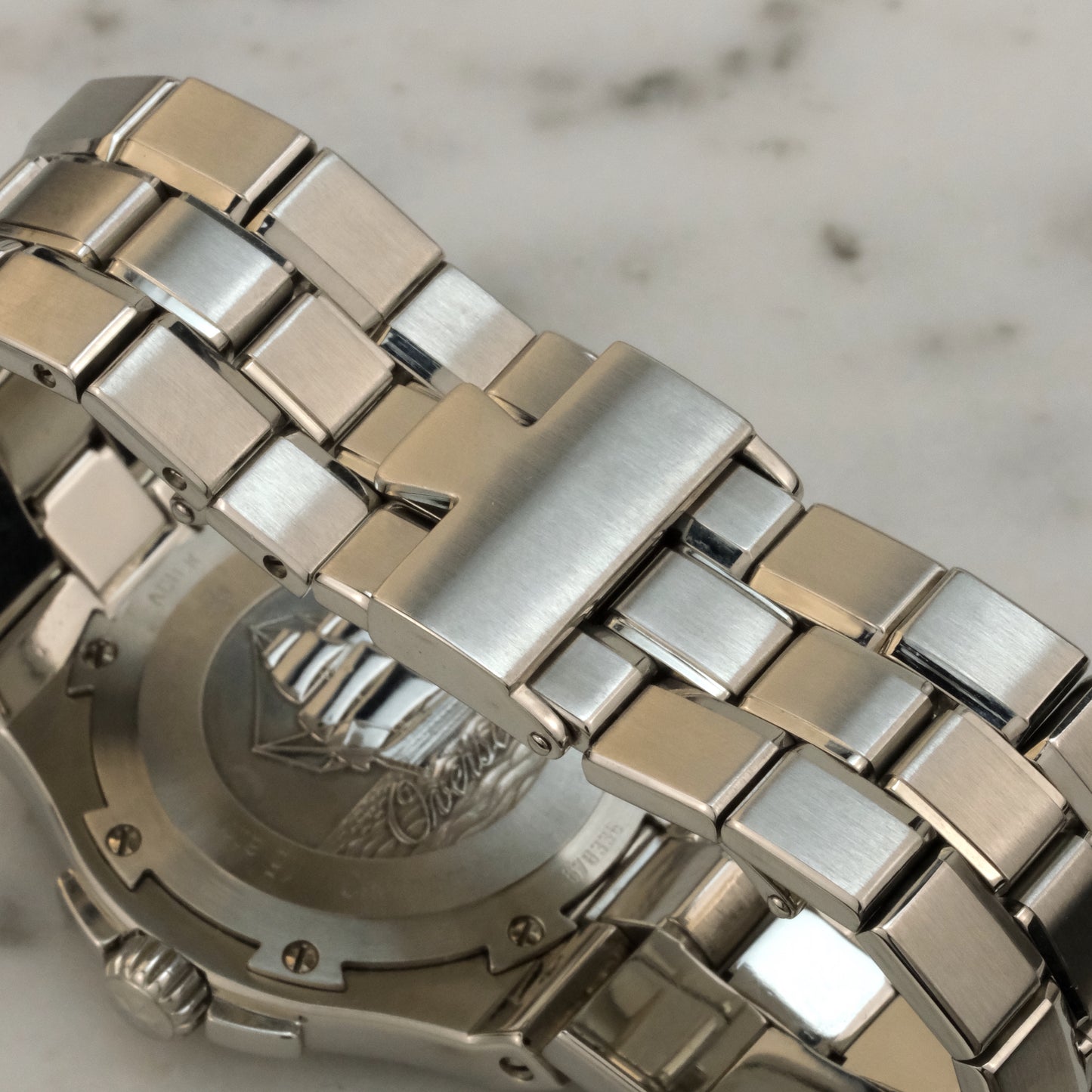 The Watch: Released in the late 1990s, the Ref. 72050/423A represents the earliest evolution of Vacheron Constantin’s Overseas line in quartz form. While the 42050 housed an automatic movement, this quartz variant retains the same integrated design, robust build quality, and iconic styling delivered in a slightly slimmer 35mm case.