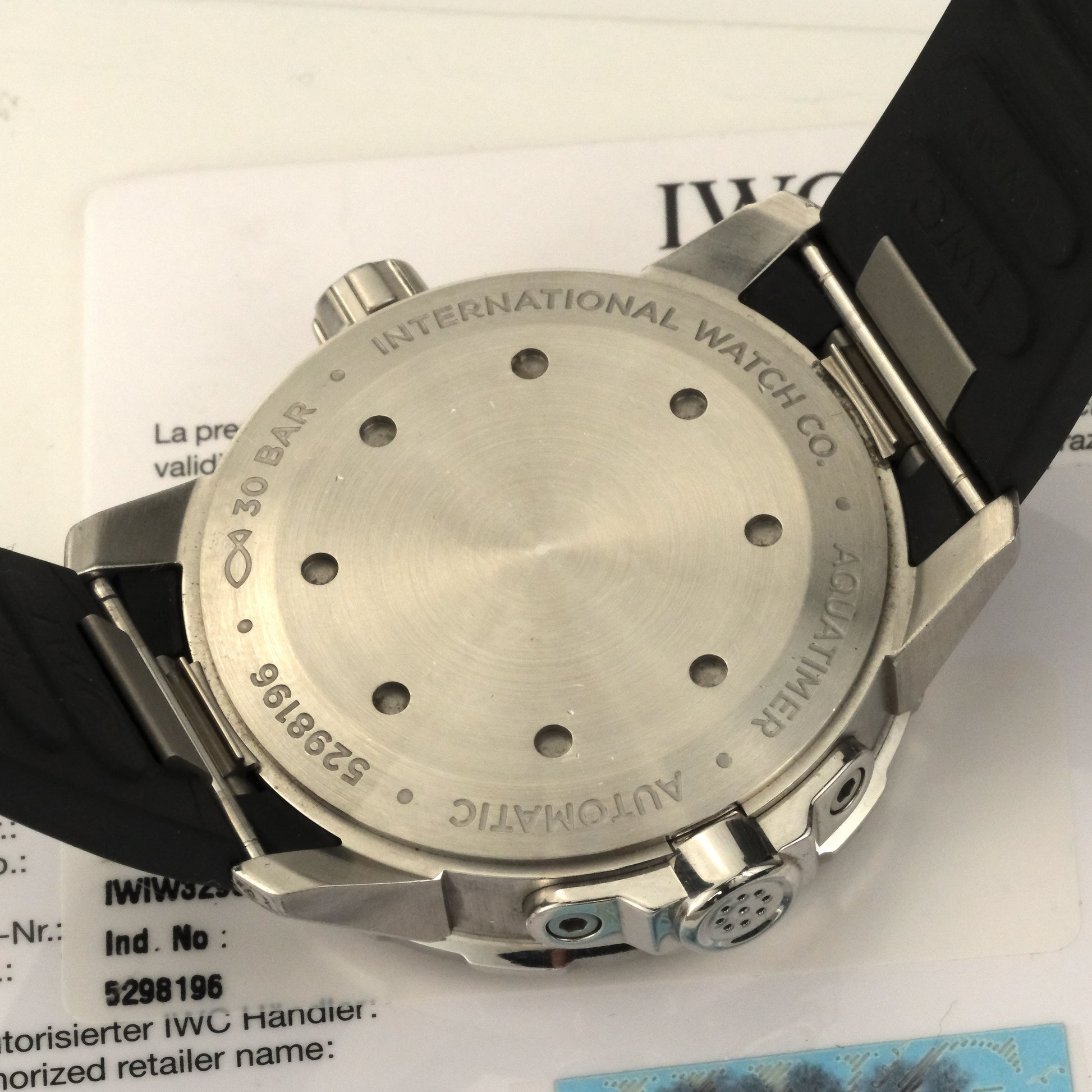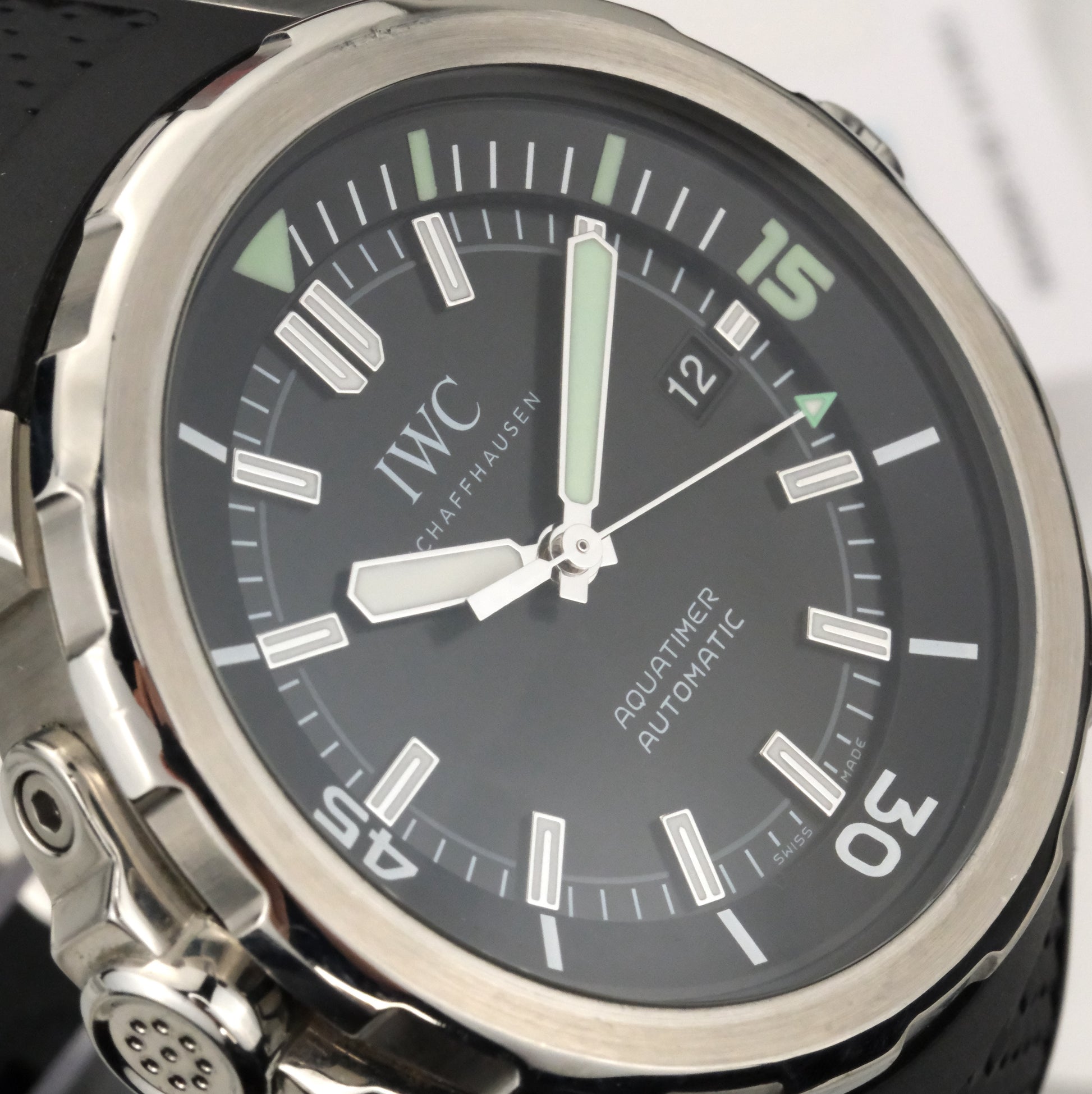 Powered by IWC caliber 30120 automatic. Water resistant to 300 meters. The Aquatimer is IWC's engineering-first answer to the dive watch.