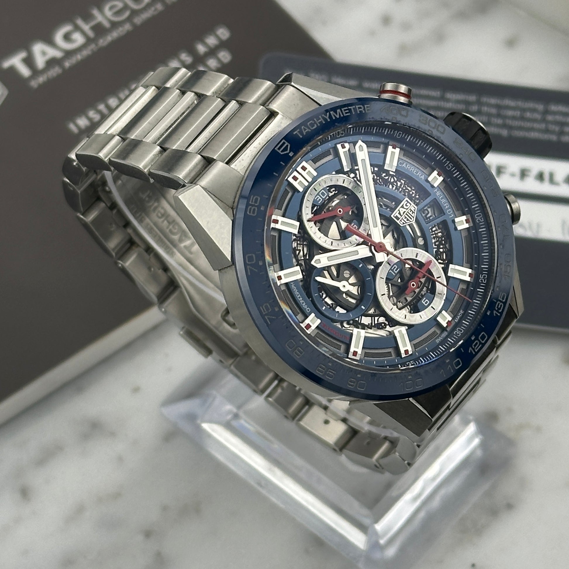 The Watch: The TAG Heuer Carrera Calibre Heuer 01 CAR201T.BA0766 represents a bold evolution of one of watchmaking's most iconic motorsport chronographs. Introduced in 1963 by Jack Heuer, the TAG Heuer Carrera quickly became a renowned name in luxury chronographs, drawing inspiration from the Carrera Panamericana—an iconic road race in Mexico famed for its speed and intensity. This 2017 example showcases TAG Heuer's modern take on racing heritage with a striking skeletonized blue dial.