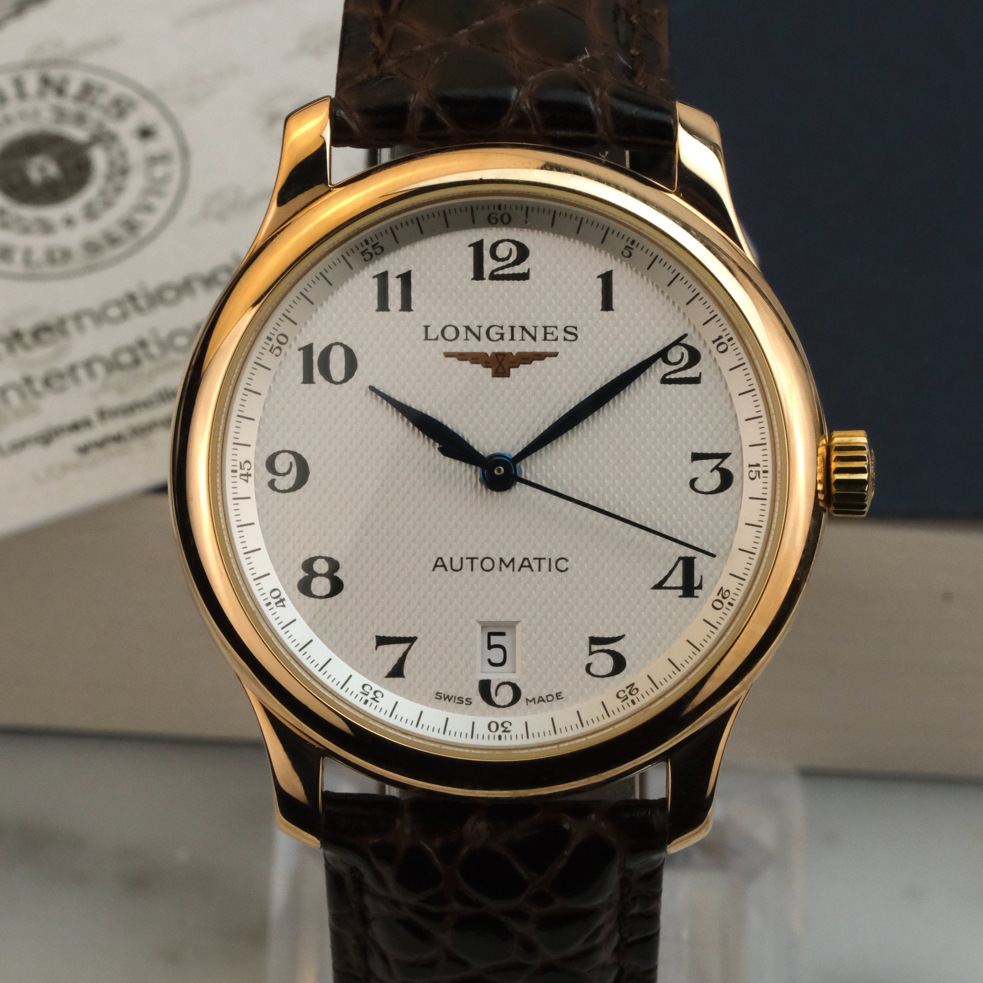 The Watch: A refined expression of Longines’ watchmaking heritage, this Master Collection reference brings together classical aesthetics and reliable mechanics in a warm rose gold case.