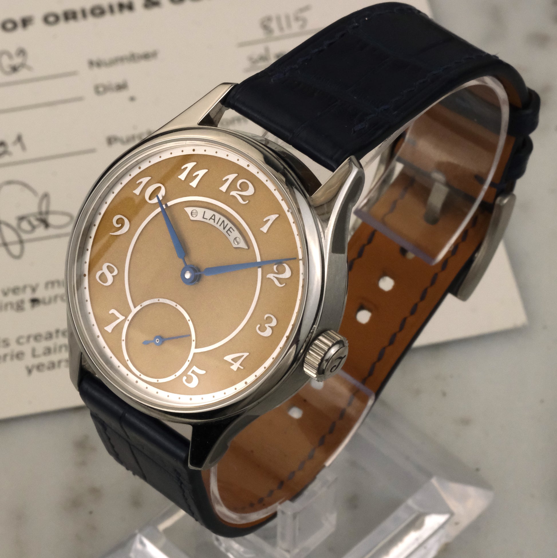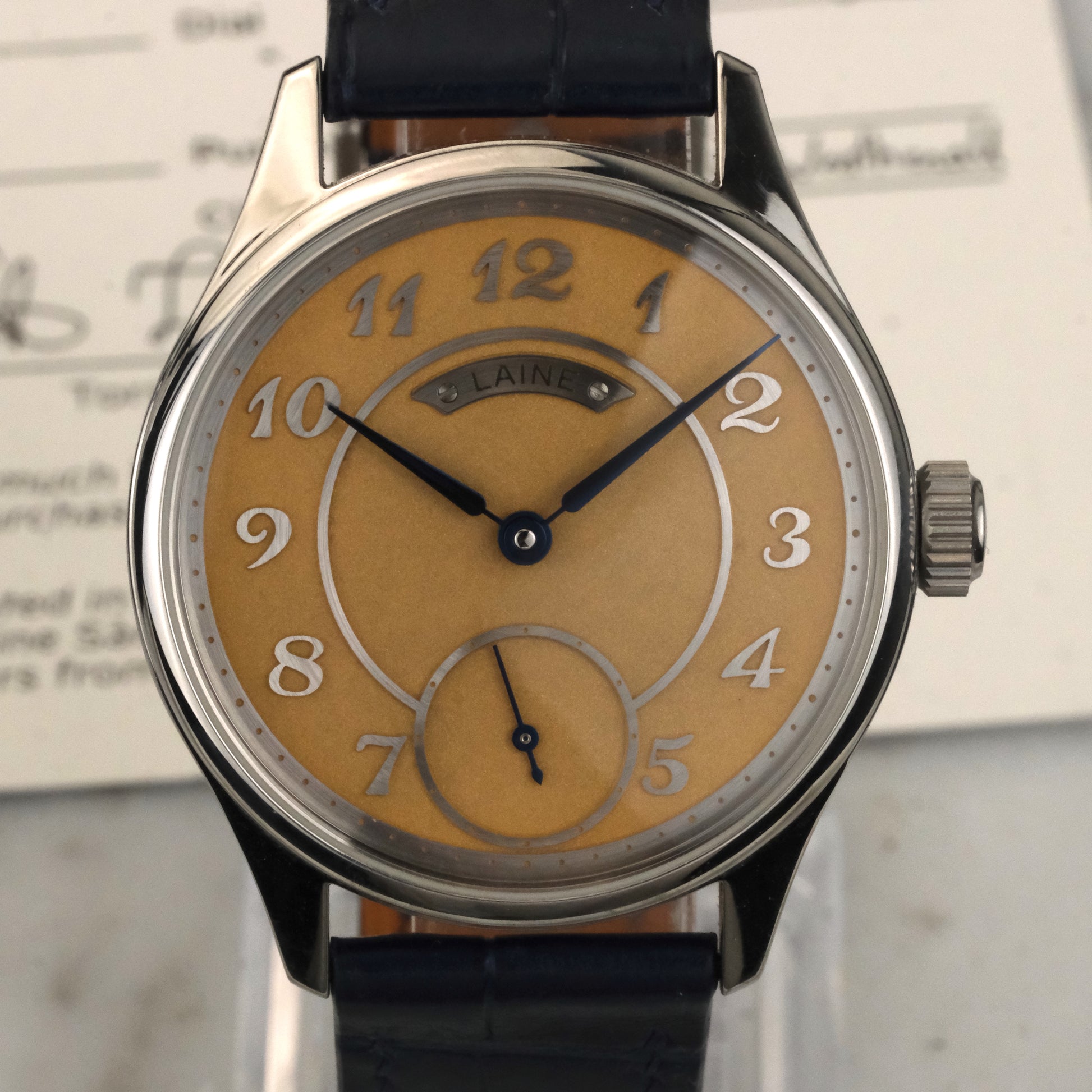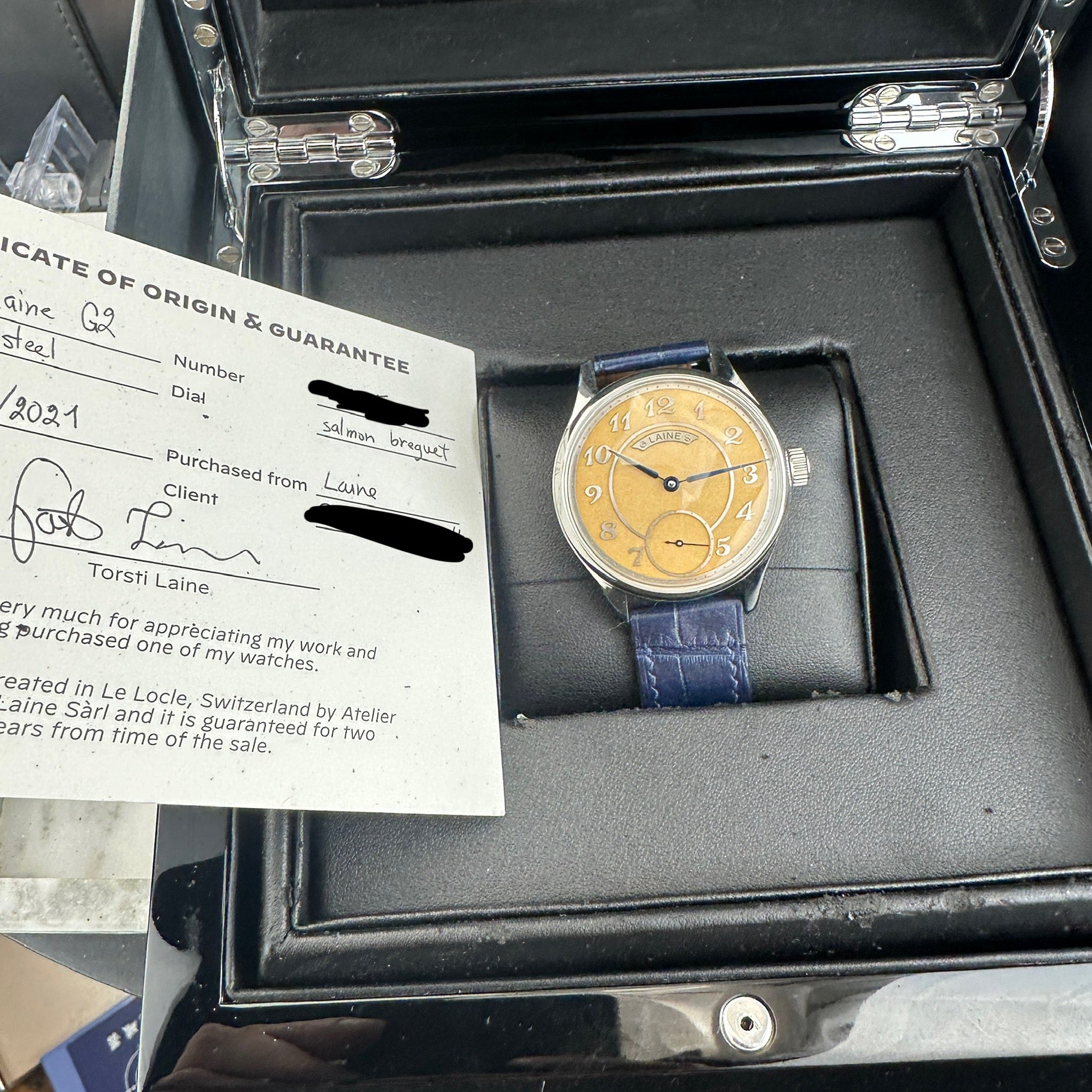 The Watch: Laine is a small independent atelier founded by Finnish watchmaker Torsti Laine, a graduate of WOSTEP and former member of Kari Voutilainen’s workshop. Known for his masterful guilloché dials and artisanal finishing, Laine produces only a handful of watches each year, making each piece highly individual.