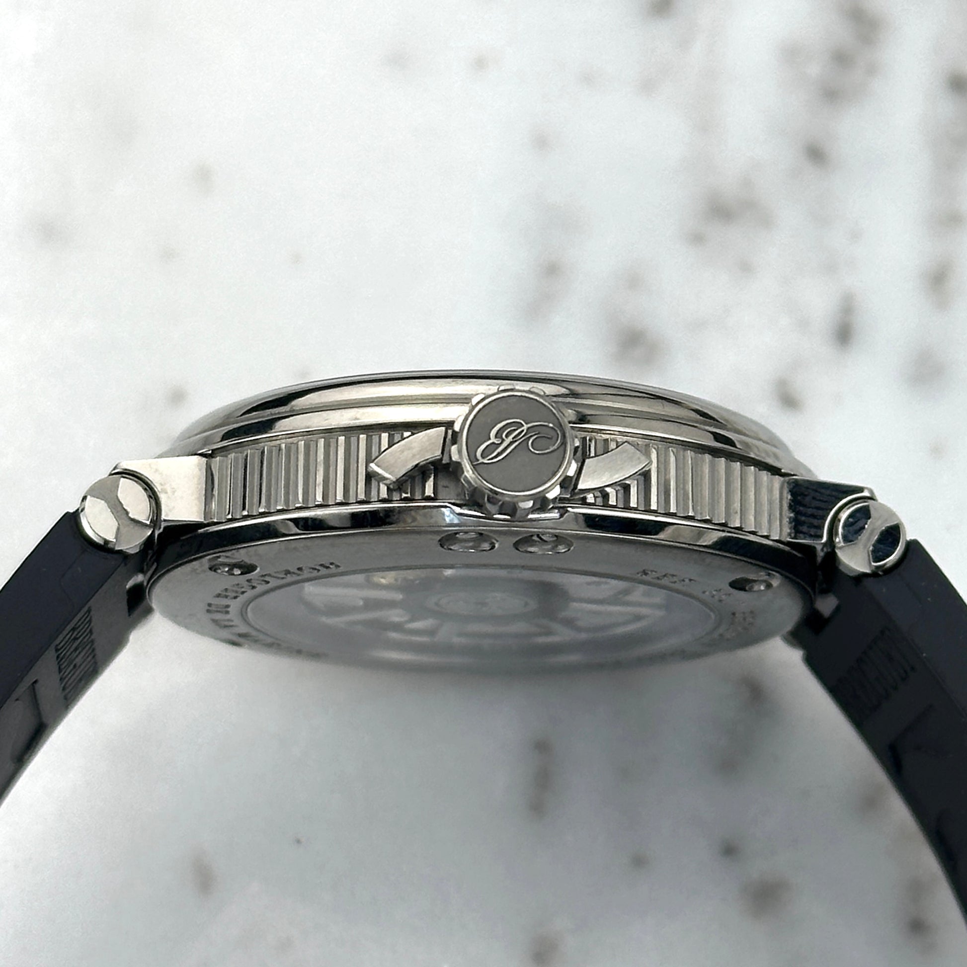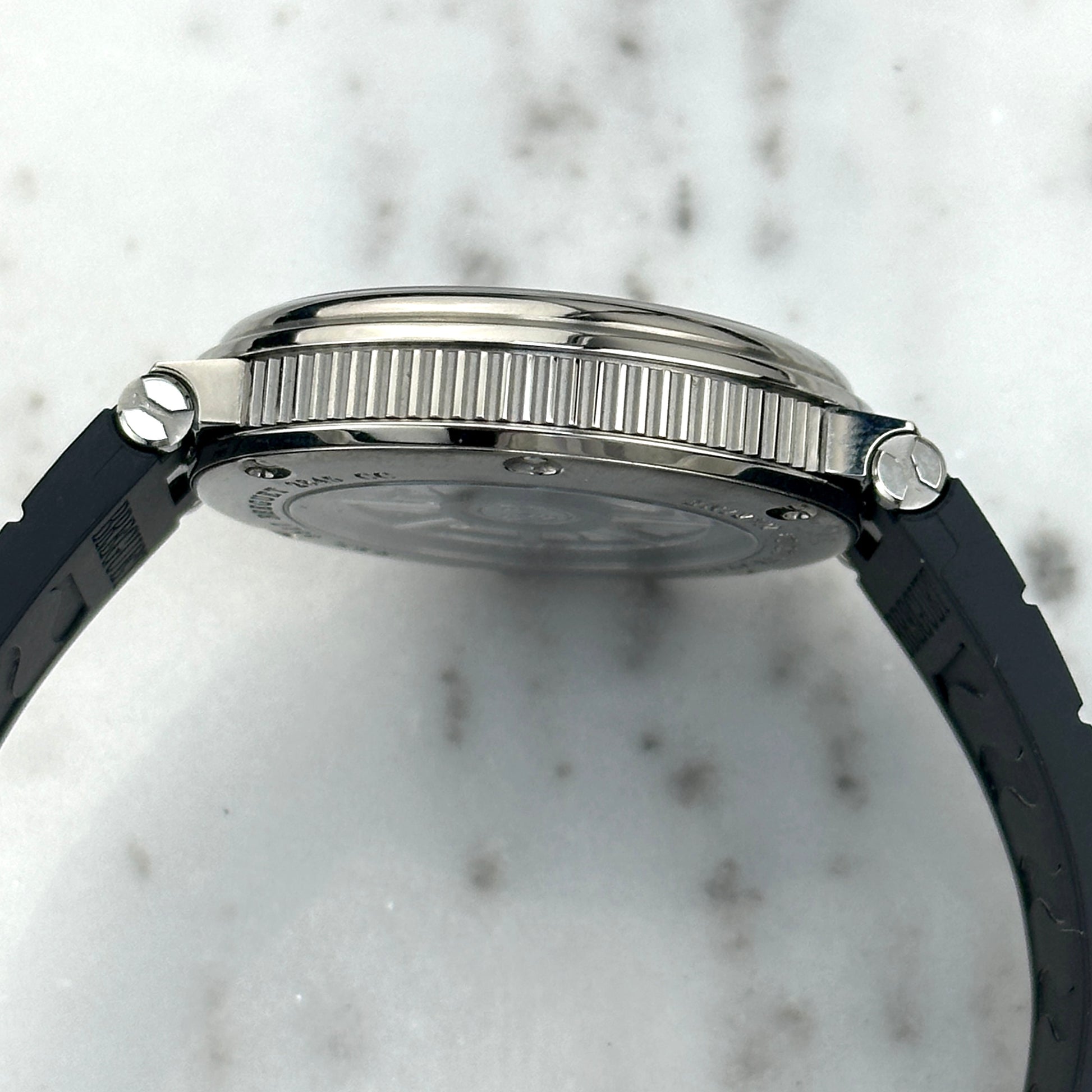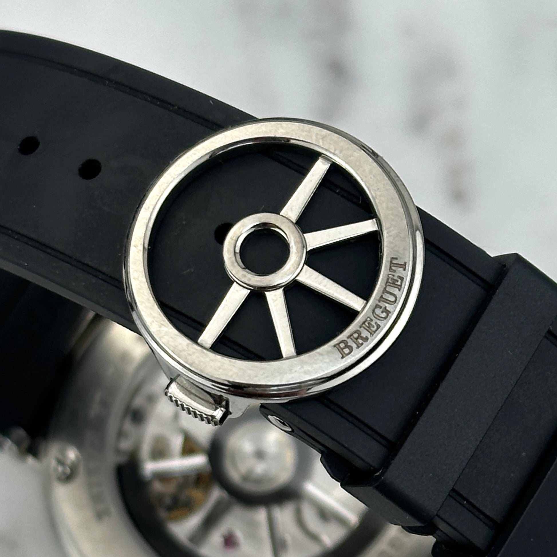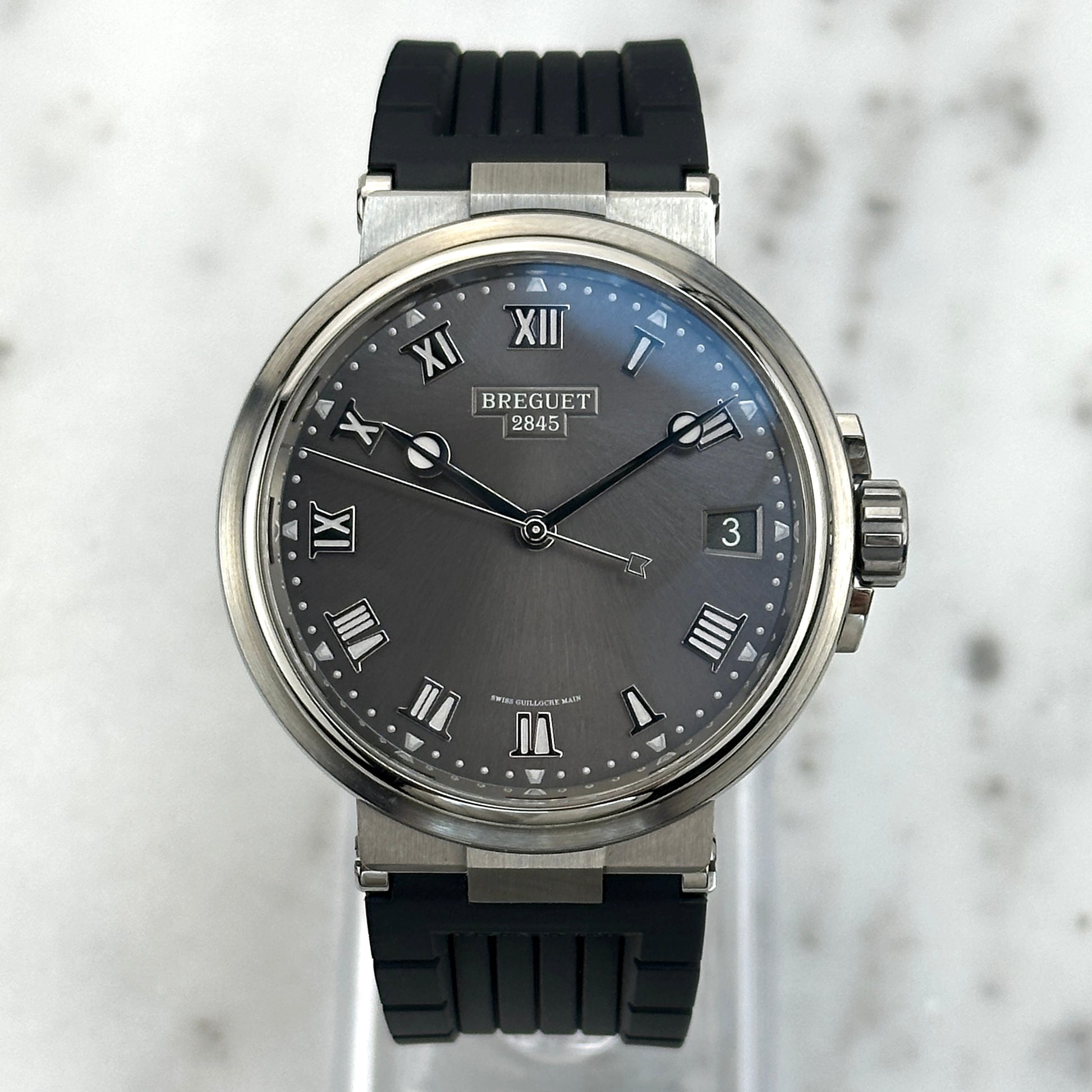 The Watch: The Breguet Marine 5517 in titanium is a contemporary reinterpretation of the maison’s centuries-old nautical legacy. Introduced as part of the revamped Marine collection, the 5517 pairs Breguet’s refined aesthetic language with modern materials and robust specifications. The 40mm titanium case paired with a Breguet rubber strap is lightweight yet durable, offering daily wear comfort. The dial is finished in slate grey sunburst, accented with applied Roman numerals, luminous hands, and a discreet date aperture at 3 o’clock.