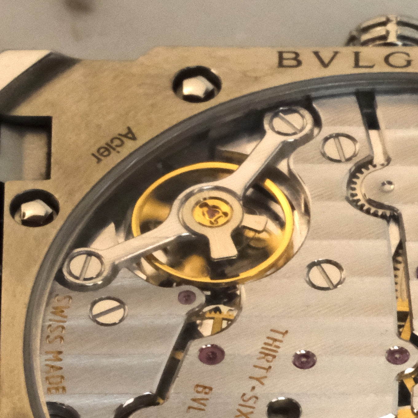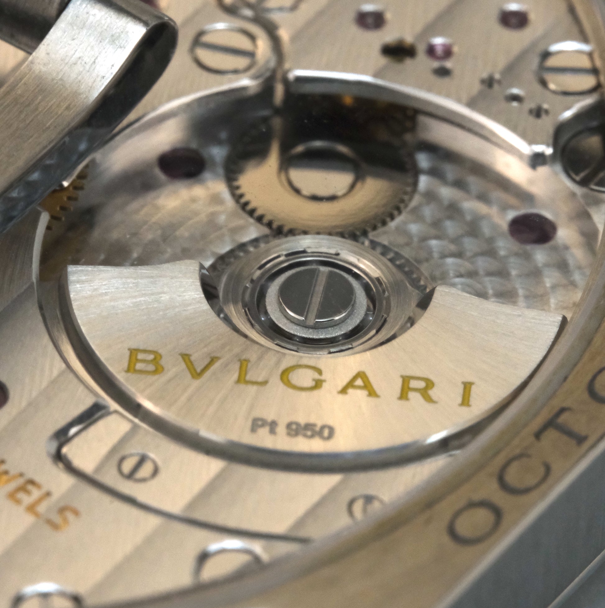 Time is displayed simply and cleanly: central hours and minutes, with a recessed small seconds subdial at 7 o’clock. Inside is the in-house BVL 138, a micro-rotor automatic movement with a 60-hour power reserve and refined finishing visible through the sapphire caseback.