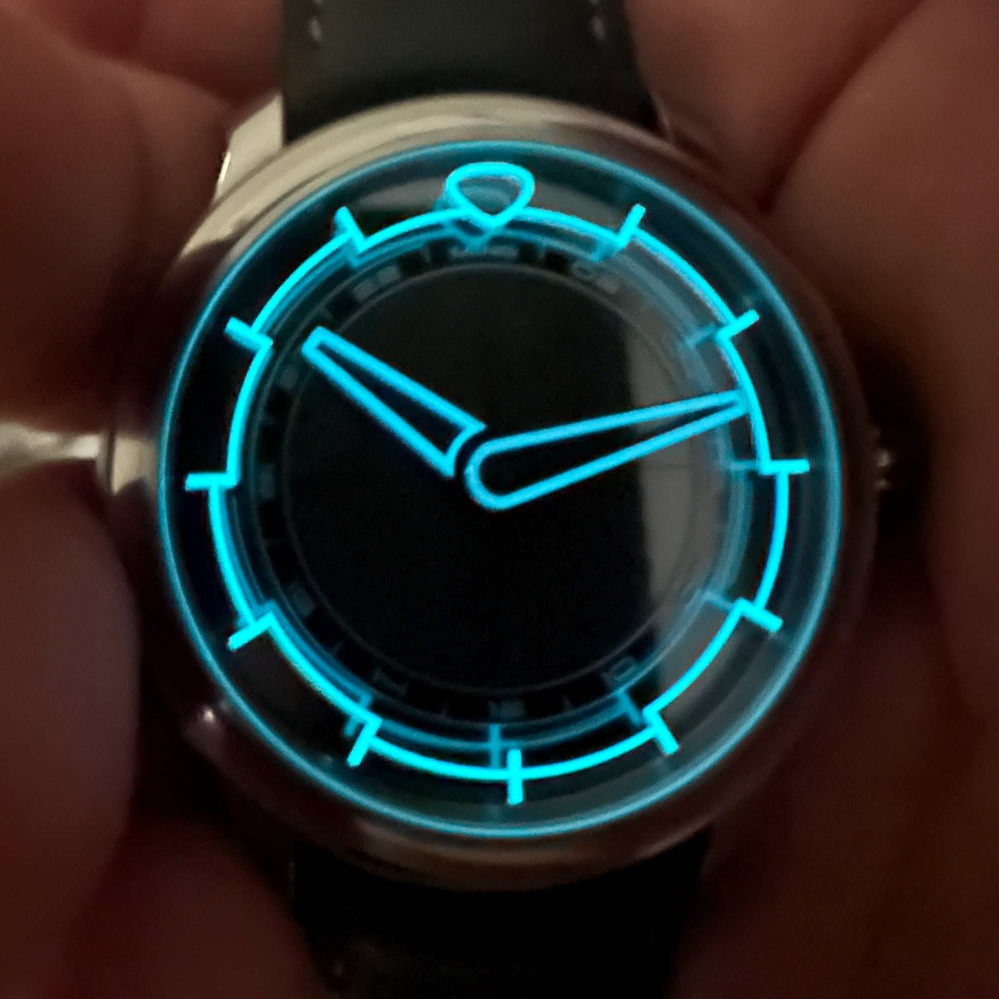 This example comes as a full set, including the original box, papers, and travel pouch. It’s in excellent condition, showing only the lightest signs of careful wear. A compelling, design-forward GMT with real-world usability, and one of the most sought-after modern releases from an independent brand that continues to punch above its weight.