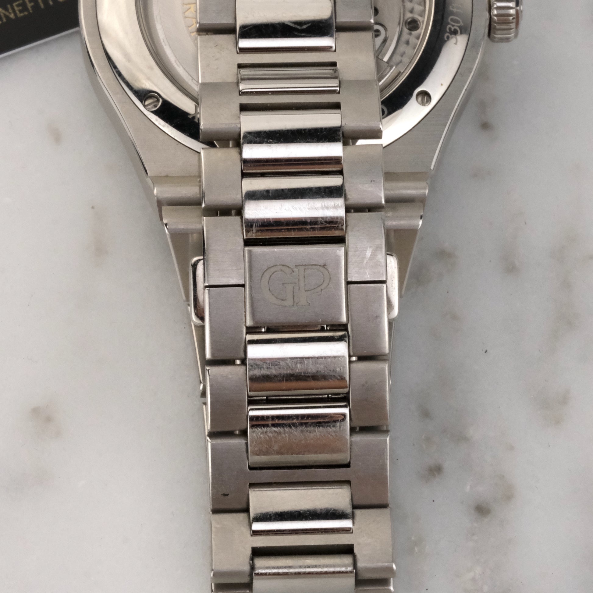 Powering the watch is the GP01800-0008 automatic movement, visible through the sapphire caseback. It beats at 28,800 vph, offers a 54-hour power reserve, and features fine finishing consistent with GP’s reputation as a true manufacture.