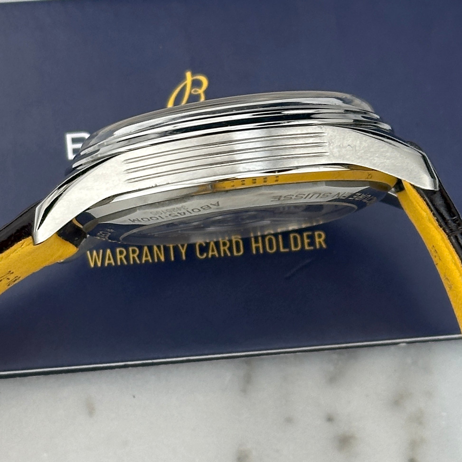 Includes: Full set: box, booklets, and Jomashop warranty card (active), rather than a Breitling-stamped card.