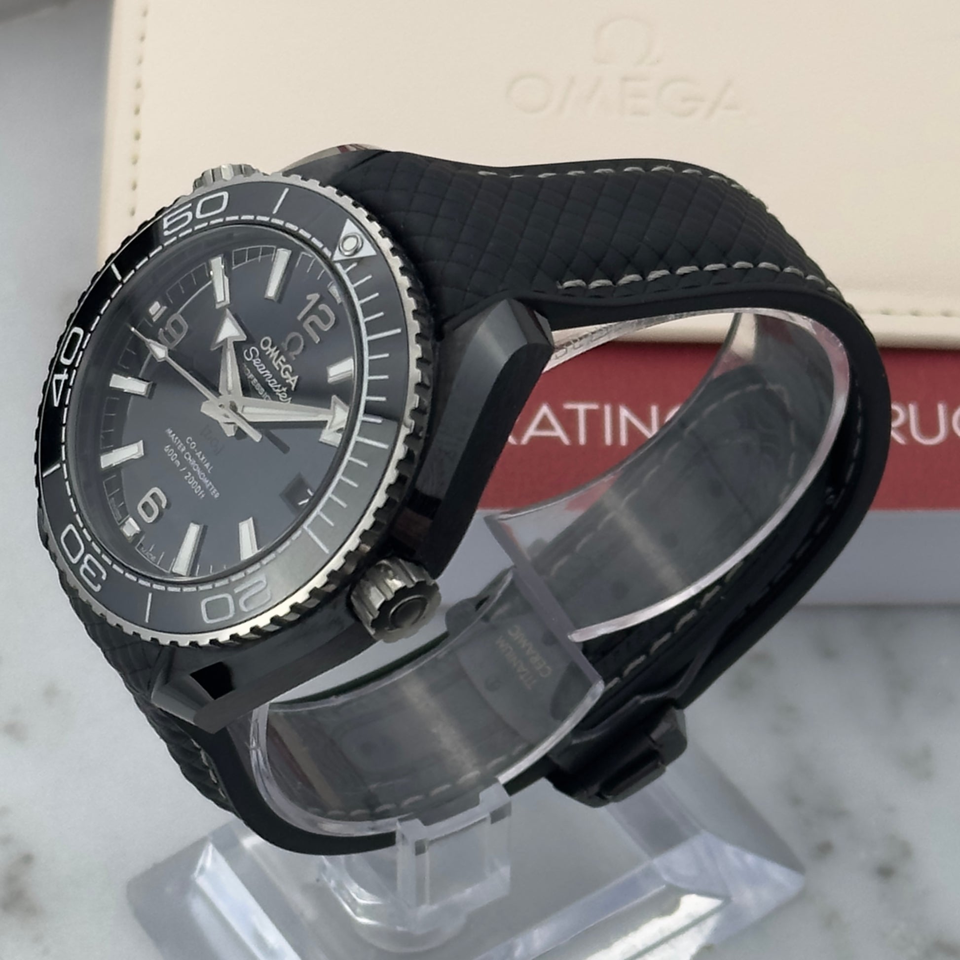 The Watch: The Planet Ocean has been Omega's serious dive watch since 2005, sitting above the Seamaster 300M in both depth rating and case construction. This reference takes the 39.5mm Planet Ocean and builds the entire case, bezel, and dial out of black zirconium oxide ceramic. Ceramic is roughly half the weight of steel, virtually scratch-proof, and holds its finish indefinitely. The result is a dive watch that looks and feels different from anything in steel.