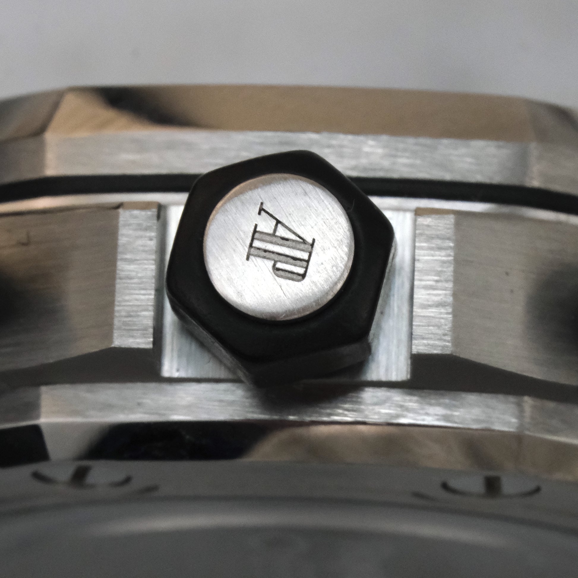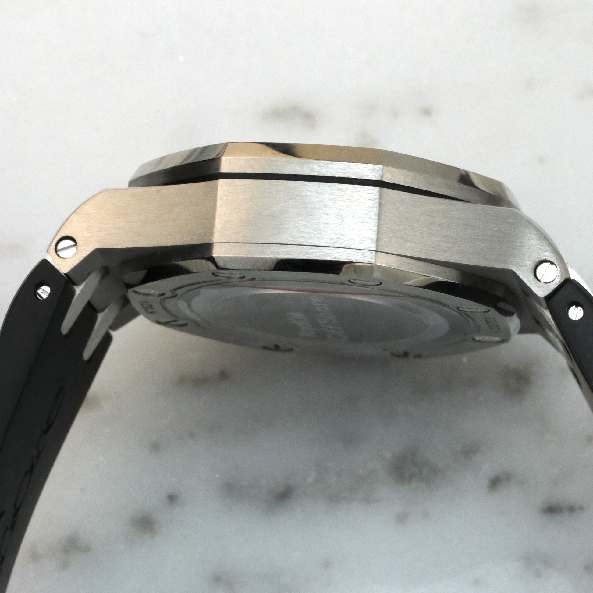 The Watch: The 26283ST is a rare mid-size Offshore—scaling down the iconic design to 37mm without losing any of the visual impact. The stainless steel case keeps the trademark octagonal bezel, exposed screws, and integrated rubber-clad pushers, but brings the proportions to a more wearable territory.