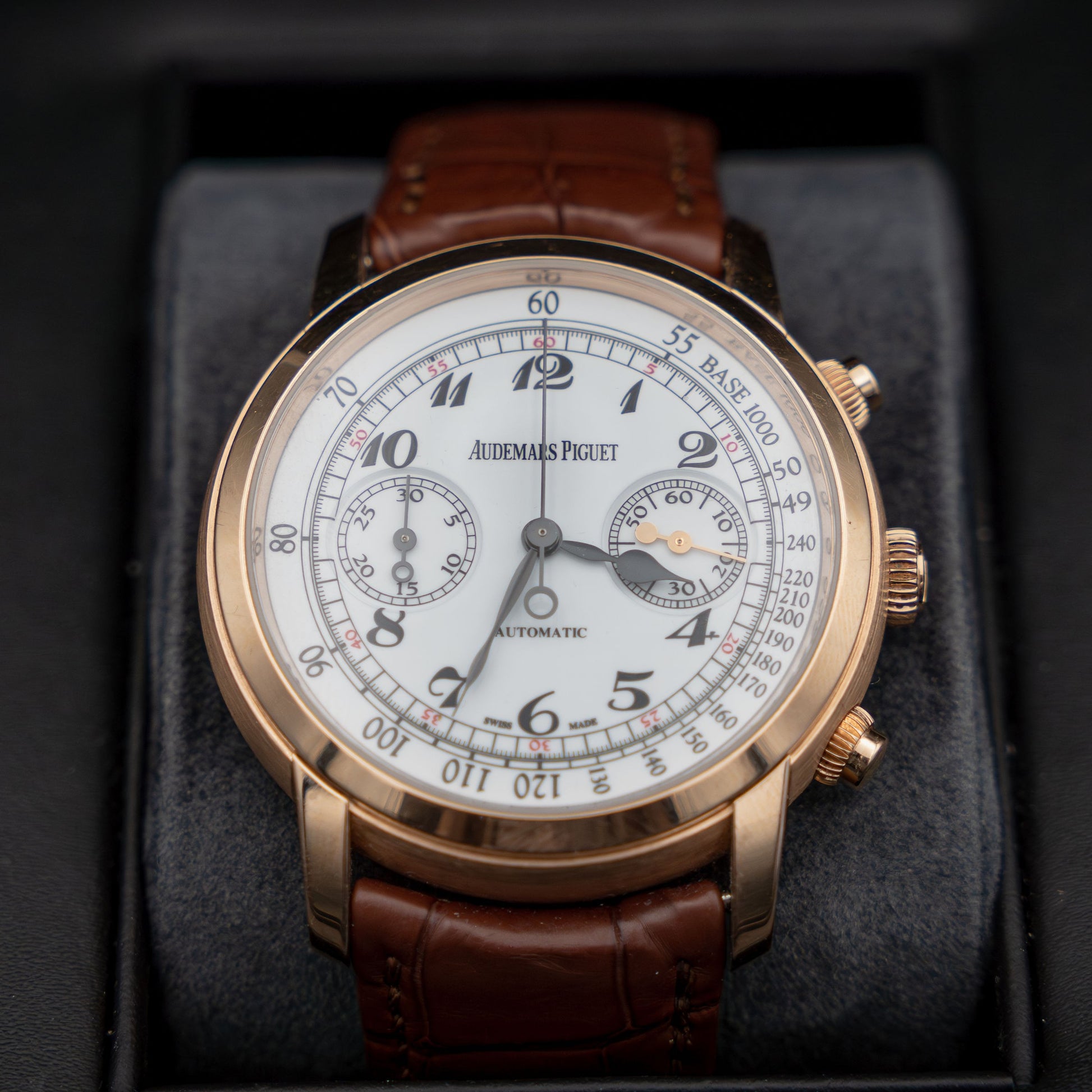 The Watch: The Royal Oak gets the attention, but Jules Audemars is where Audemars Piguet released its classic dress watches until the Code 11.59 replaced the line in 2019. The 26100OR was a turning point for the line. Introduced in 2009, it was the first self-winding chronograph in the Jules Audemars collection, pairing the elegance of the series with genuine sporty utility. The 41mm rose gold case walks a careful line between presence and restraint, substantial enough to anchor a chronograph but finished with the brushed and polished surfaces that keep it appropriate under a cuff.