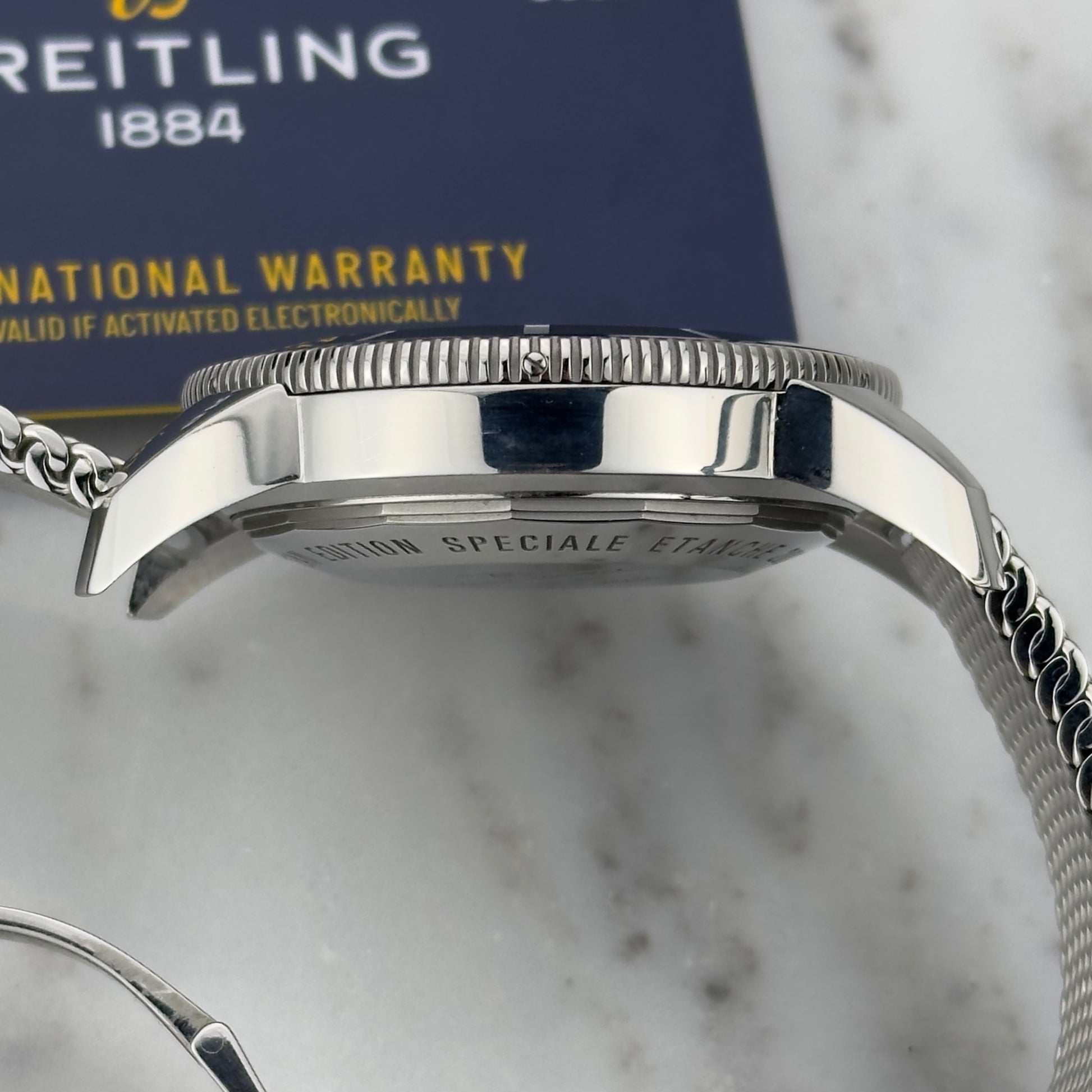 The Watch: The Superocean Heritage is Breitling's nod to its original 1957 Superocean, reinterpreted with modern materials and a dressier presence than the brand's more tool-oriented dive watches. Where the standard Superocean leans toward rugged utility, the Heritage adds a polished ceramic bezel and design cues that make it equally comfortable with a suit as with a wetsuit.