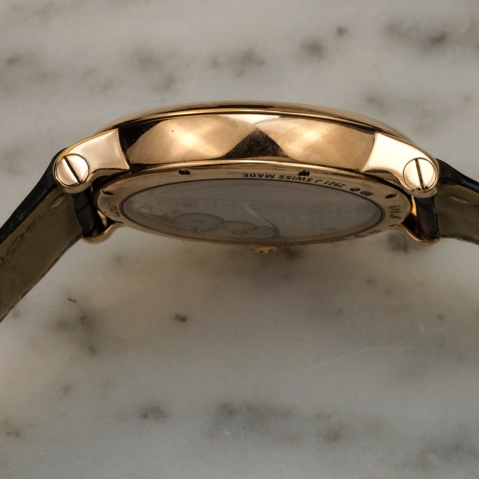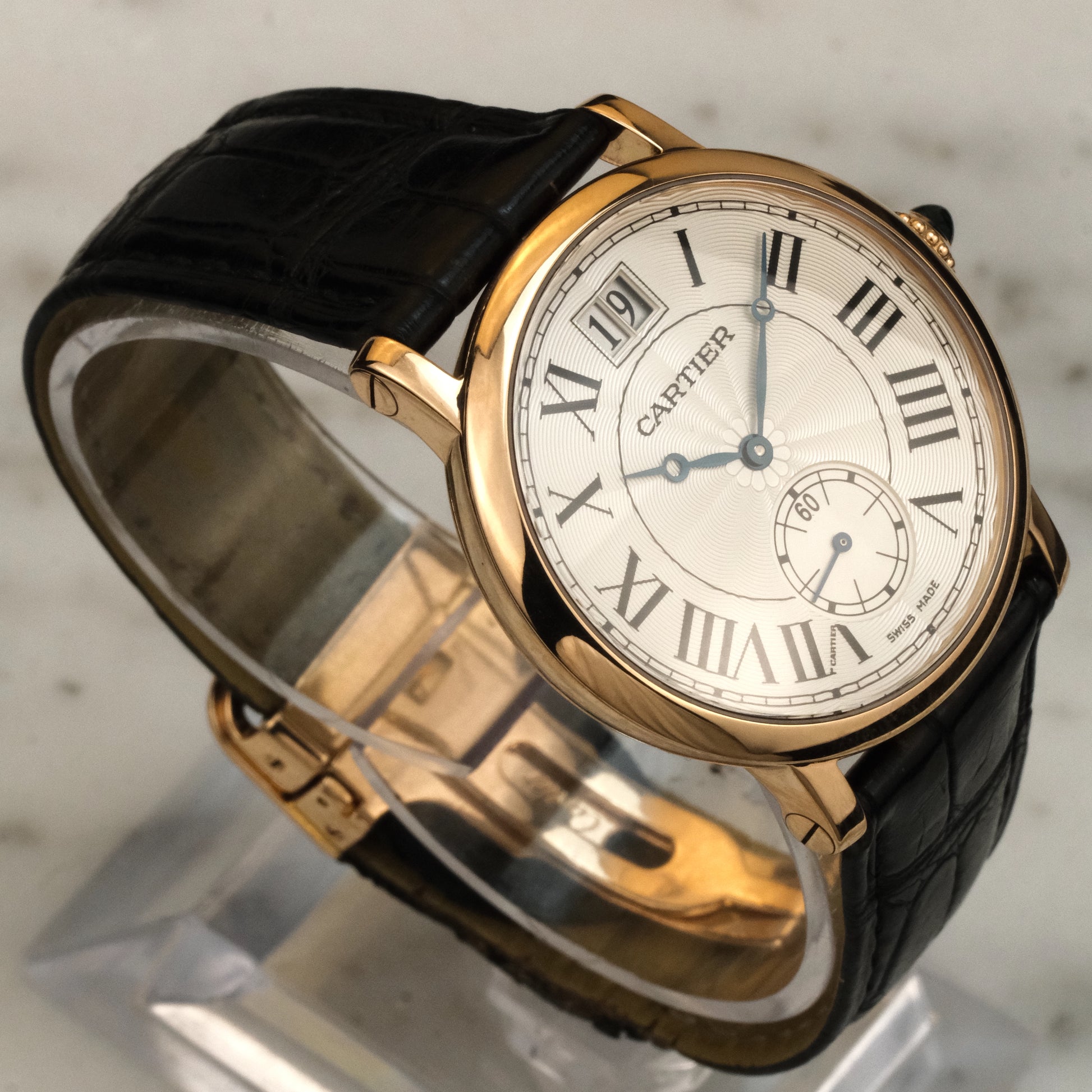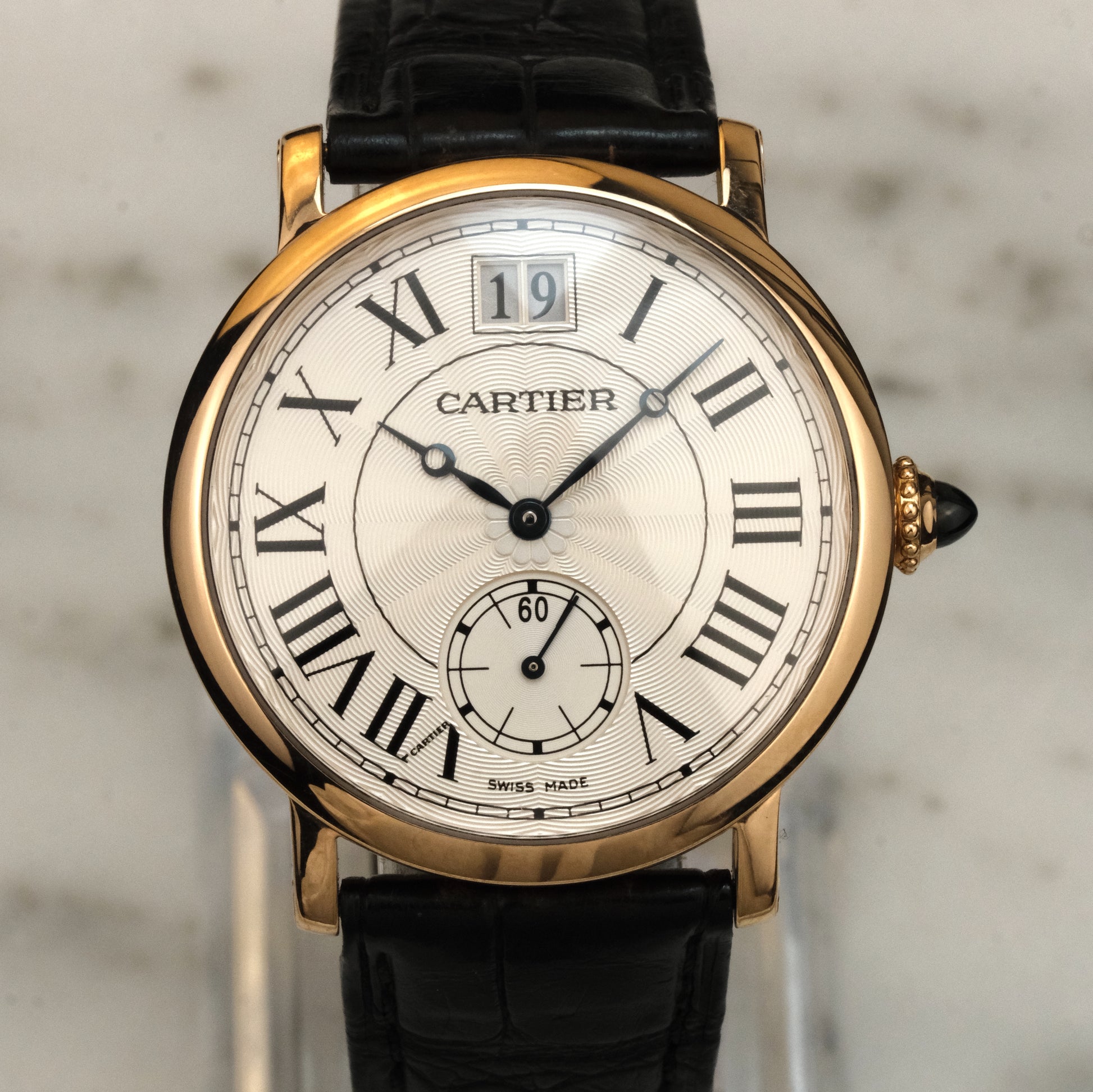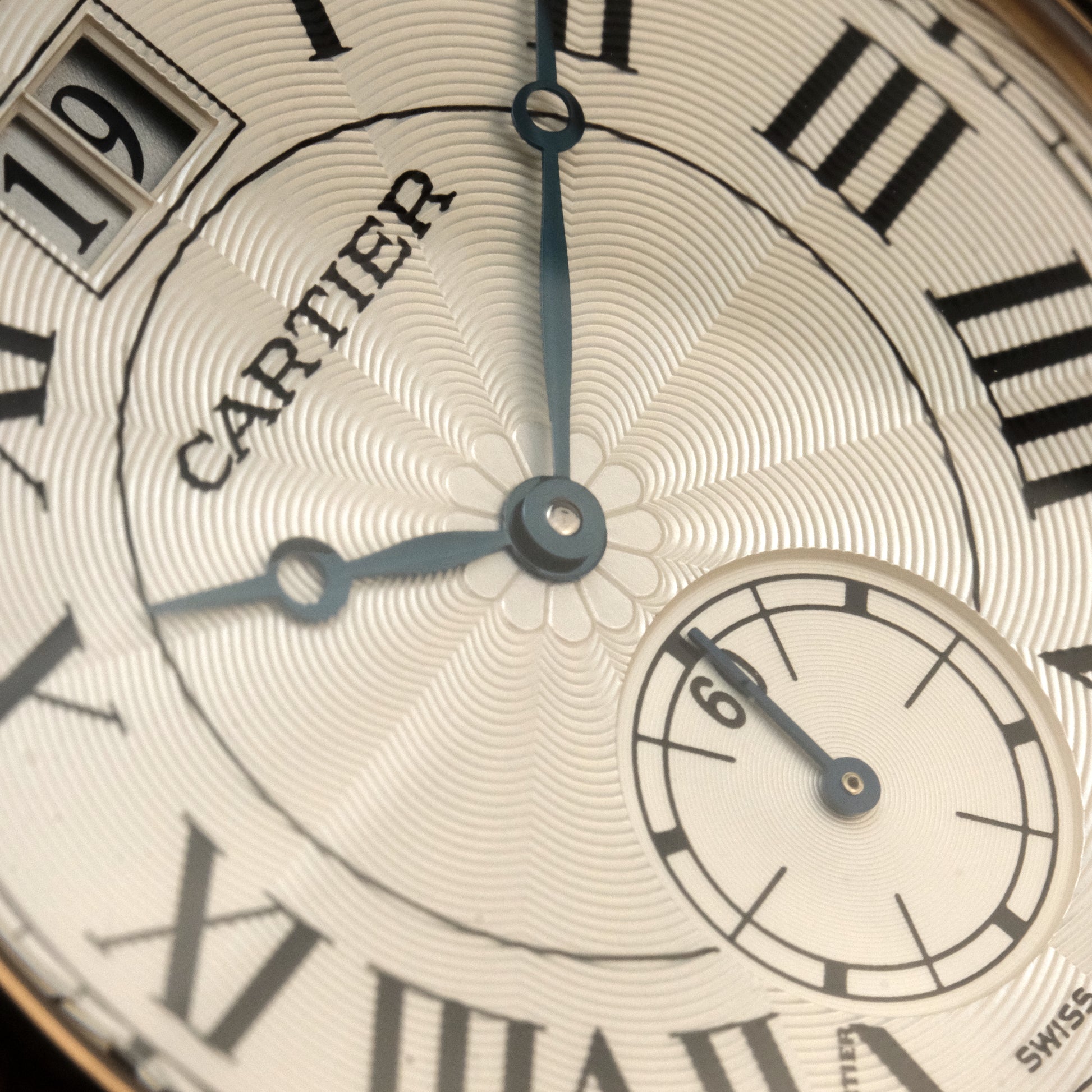 The Watch: The Rotonde 35mm is Cartier doing what it does best: classical watchmaking with razor-sharp proportion and unapologetic elegance. Cased in 18k rose gold and just 9.1mm thick, it offers a refined presence with a silvered guilloché dial, blued steel Breguet hands, and Roman numerals that feel lifted from a Belle Époque engraving.