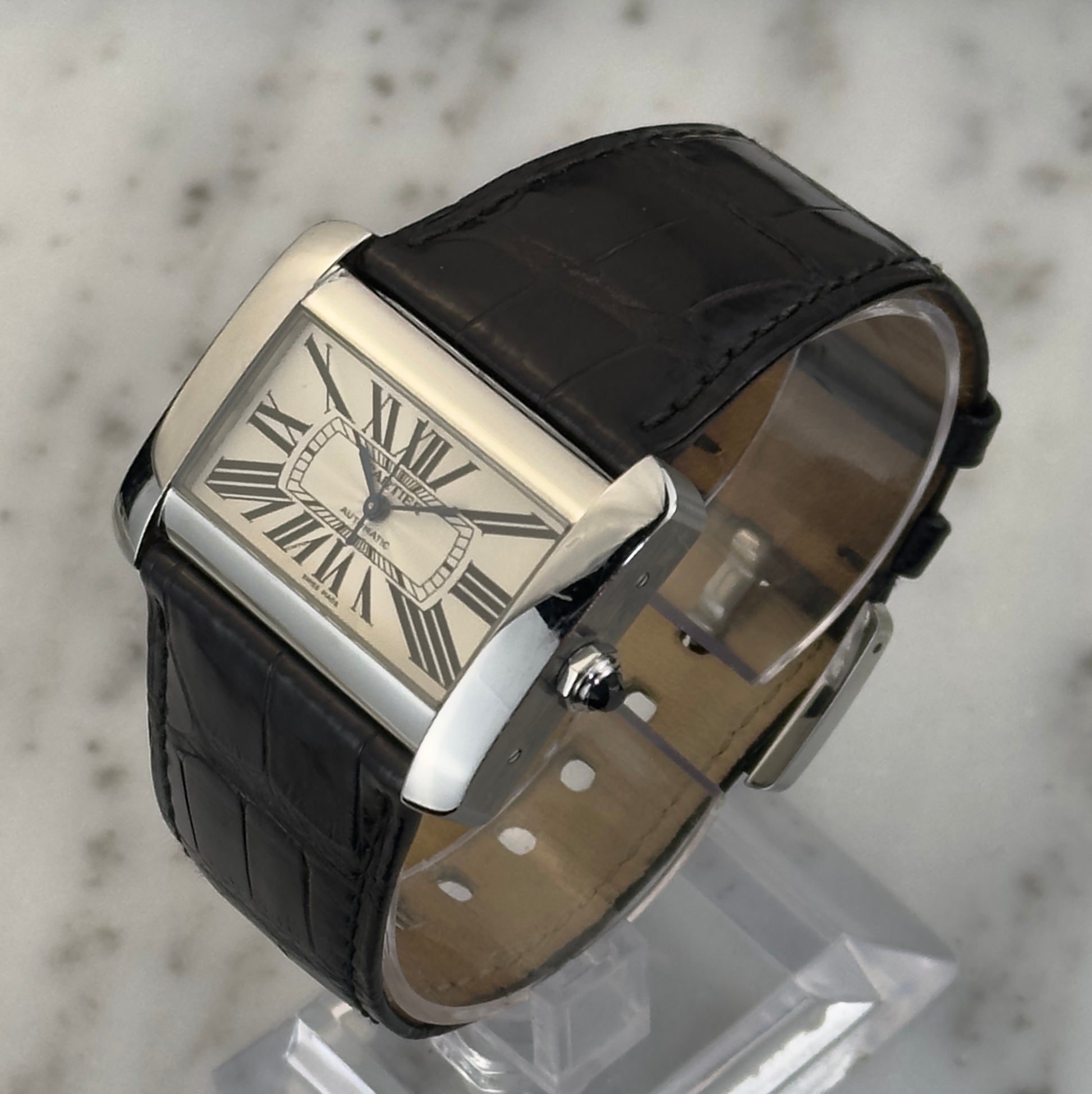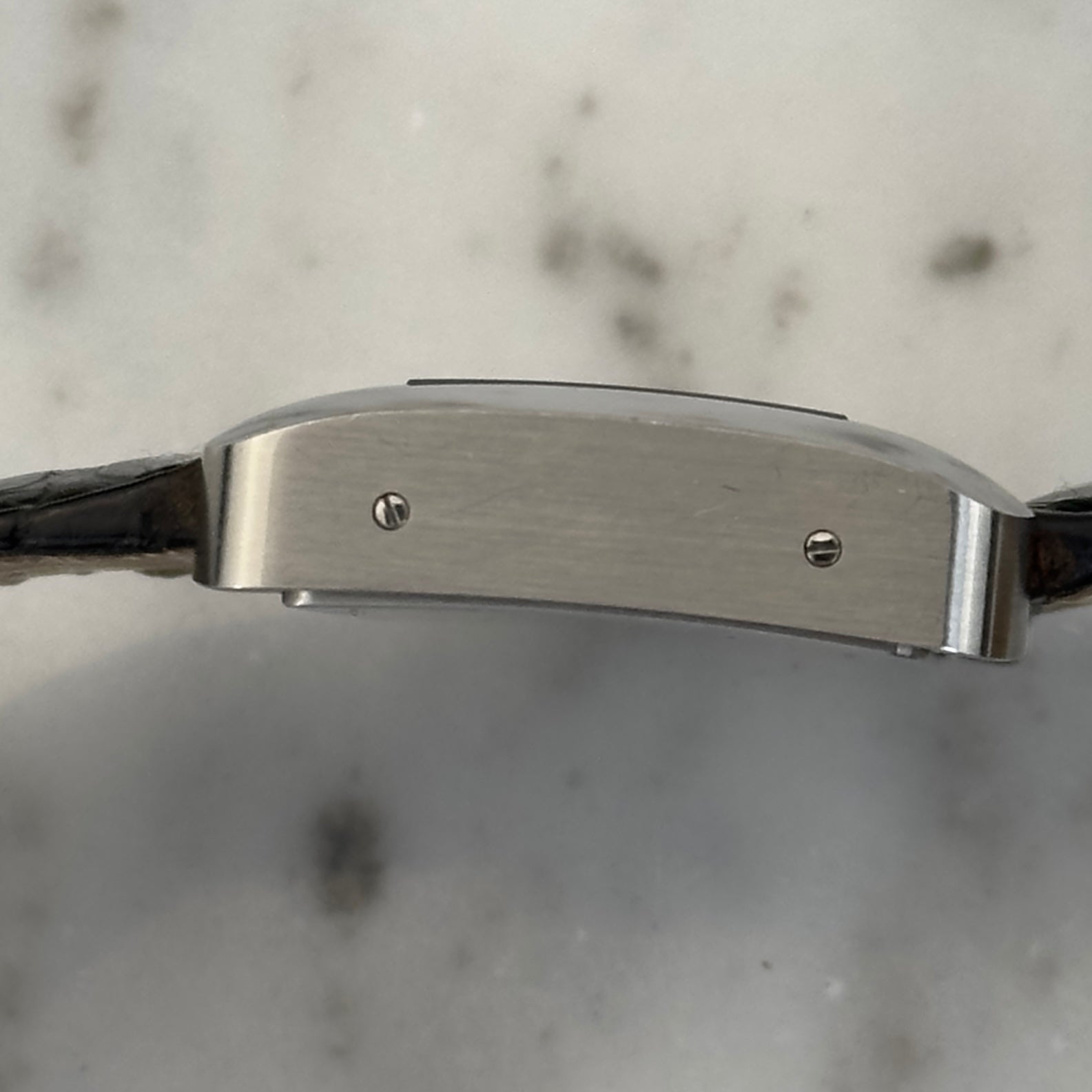 The Watch: The Tank Divan arrived in 2002 and asked a simple question: what if the Tank laid down? Named for the elongated Ottoman lounging couch that became fashionable in 19th century Europe, the Divan flipped the traditional Tank orientation from vertical to horizontal. The result was a watch that curved around the wrist rather than sitting atop it.