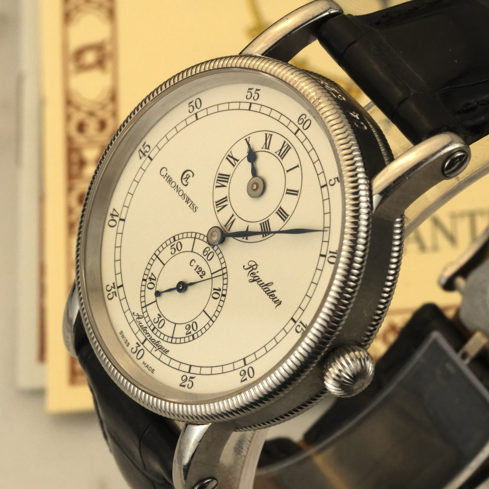 The Watch:The Chronoswiss Regulateur is one of the most successful interpretations of the regulator complication in modern watchmaking. Founded by Gerd-Rüdiger Lang in the 1980s, Chronoswiss built its reputation on this very watch, bringing the classical regulator display to the wrist in elegant dress watch form.
