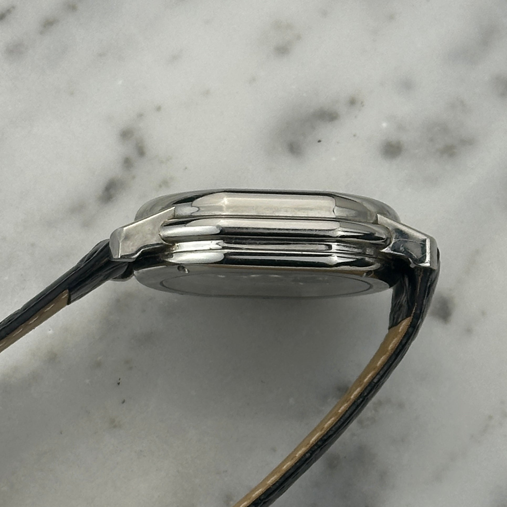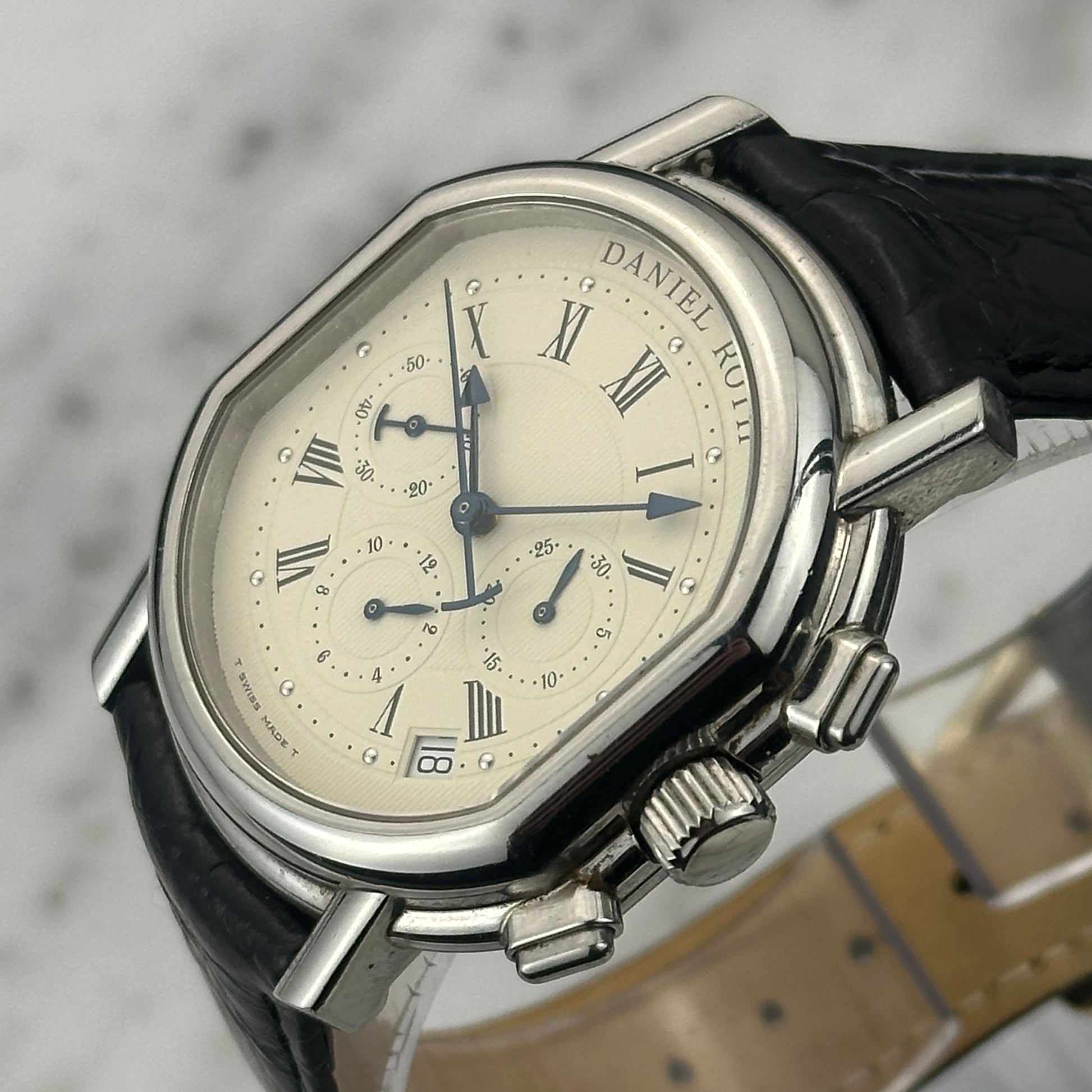 The Masters Chronograph S247 dates from the Hour Glass era, when the Singaporean retailer held a stake in the brand (1995-2000). The S247 retained the essential Daniel Roth DNA: the double-ellipse case that conforms to neither round nor rectangular conventions, the guilloché dial work that traces back to his Breguet tenure, and the blued steel hands that have become synonymous with classical Geneva finishing.