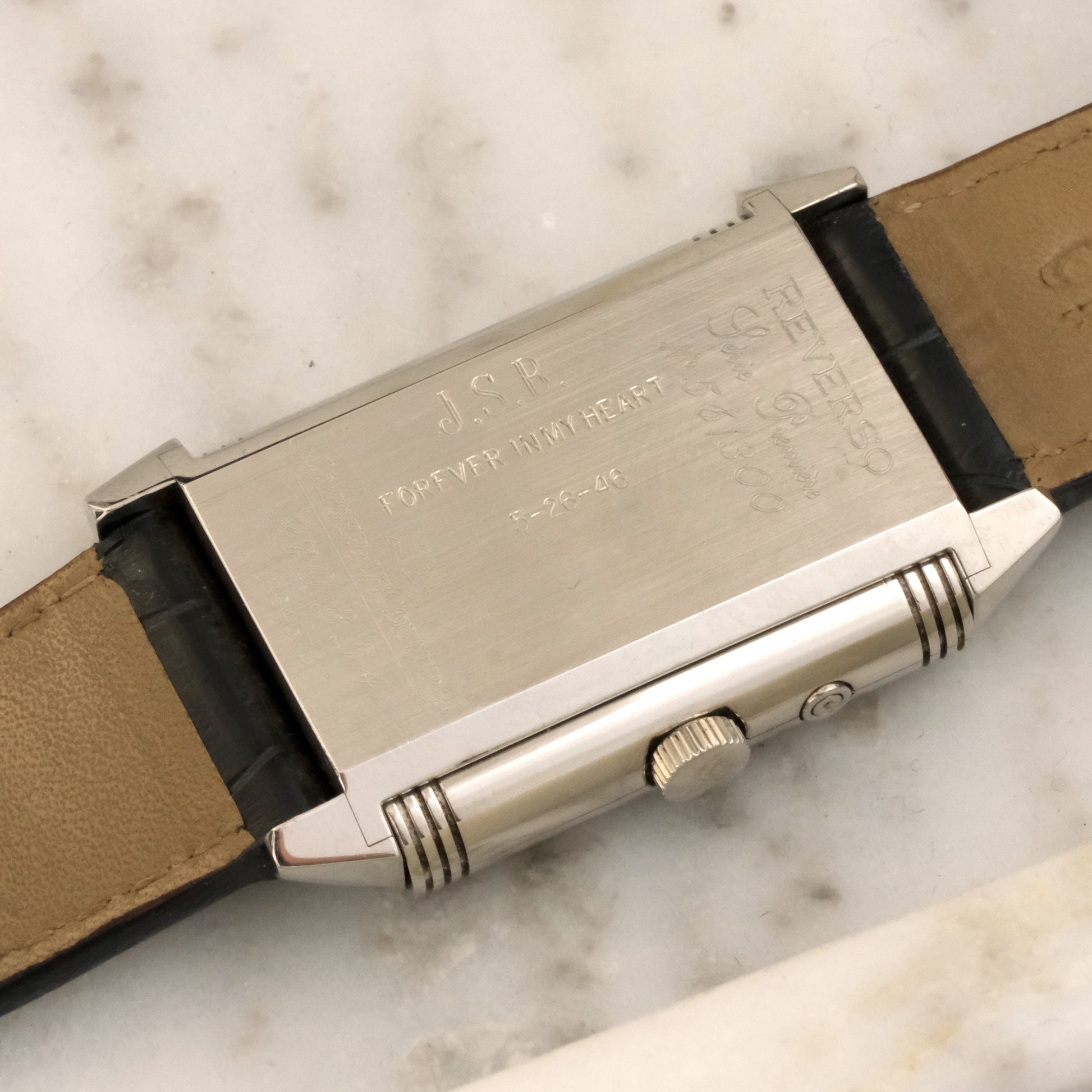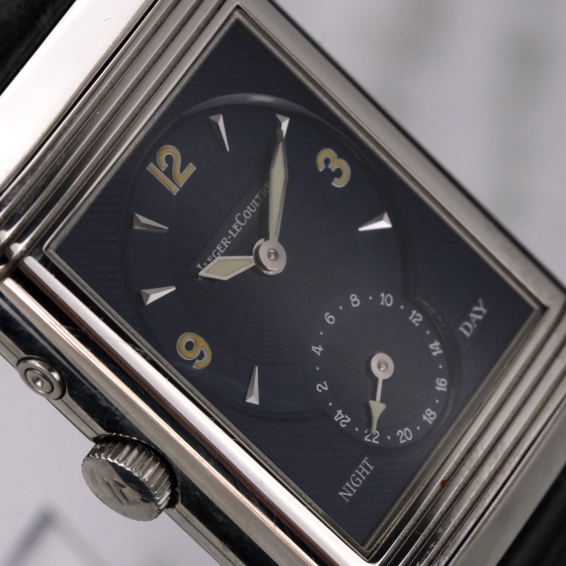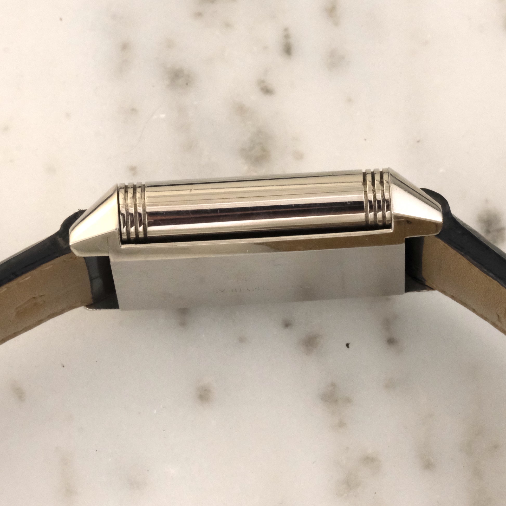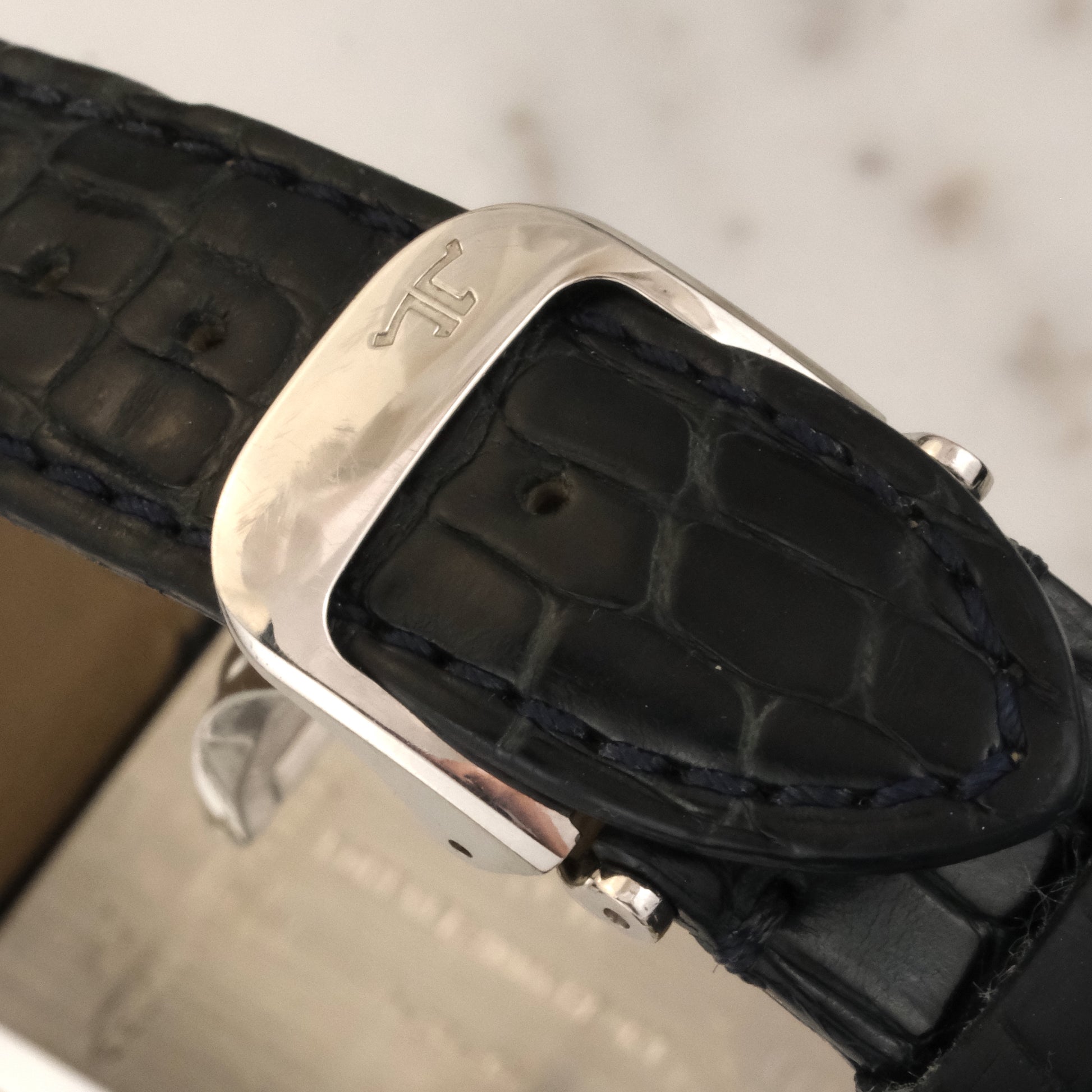 This particular example is a rare Série Première Japan Edition, limited to just 300 pieces and released only for the Japanese market. The watch features a striking deep blue dial on the reverse face, with a silver-toned primary dial, each offering its own time display. The 42mm x 26mm stainless steel case preserves the classic proportions of the Reverso while housing the dual-time complication with understated elegance.