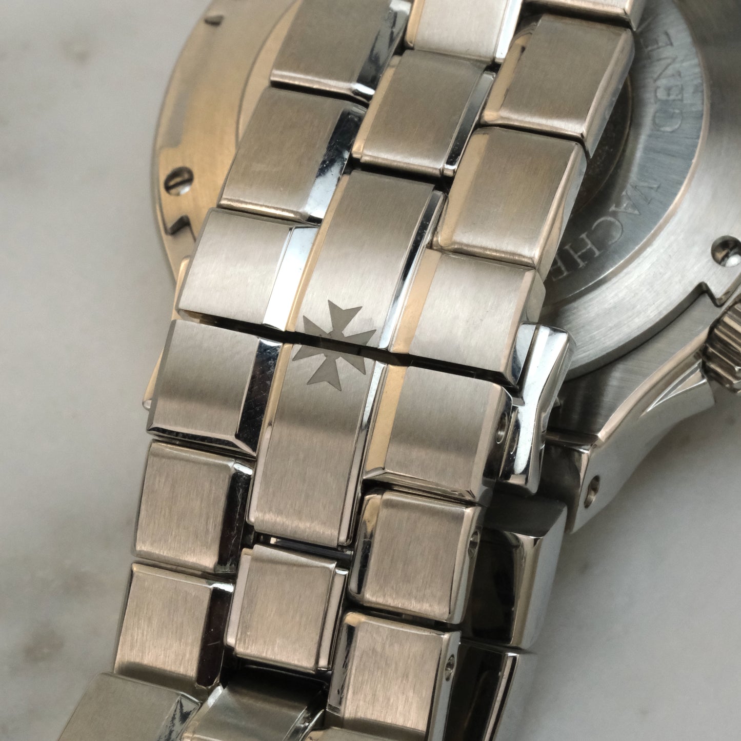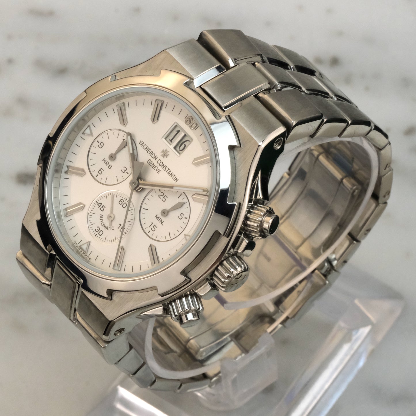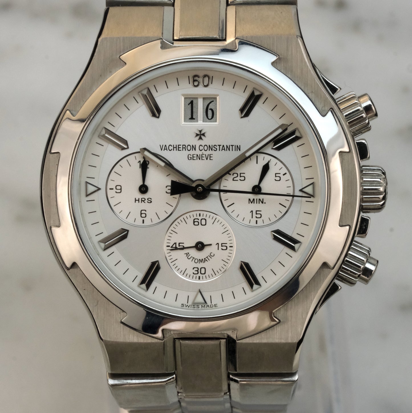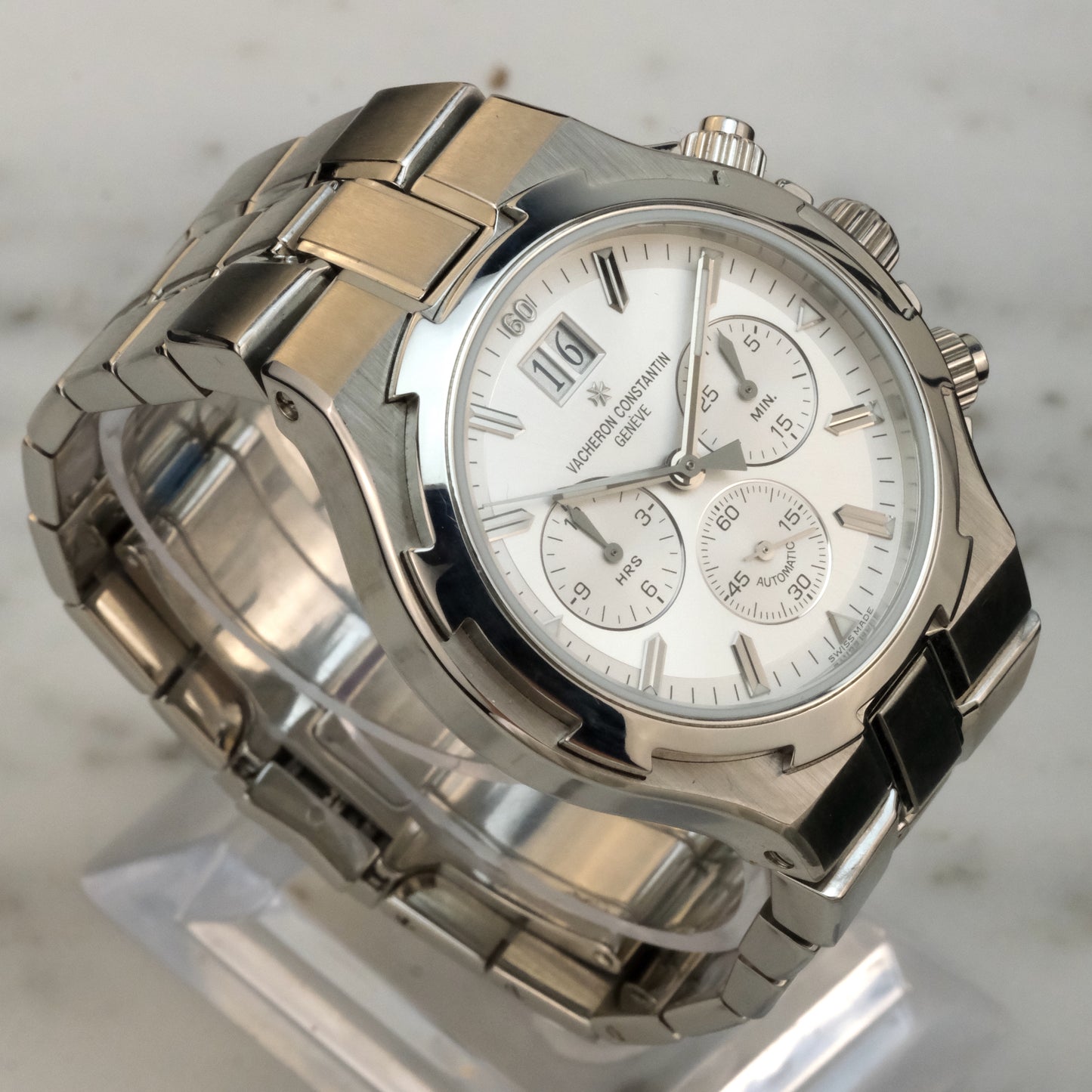 The Watch: The first-generation Vacheron Constantin Overseas Chronograph, Ref. 49140, is a study in elegant sport watch design. Produced between 1999 and 2003, this 40mm stainless steel chronograph represents Vacheron's refined response to the growing demand for luxury sports watches at the turn of the millennium. It draws inspiration from the original 222 model of 1977 and was shaped by the minds of Dino Modolo and Vincent Kaufmann, who together developed a modern, integrated aesthetic rooted in Vacheron's classical design heritage.