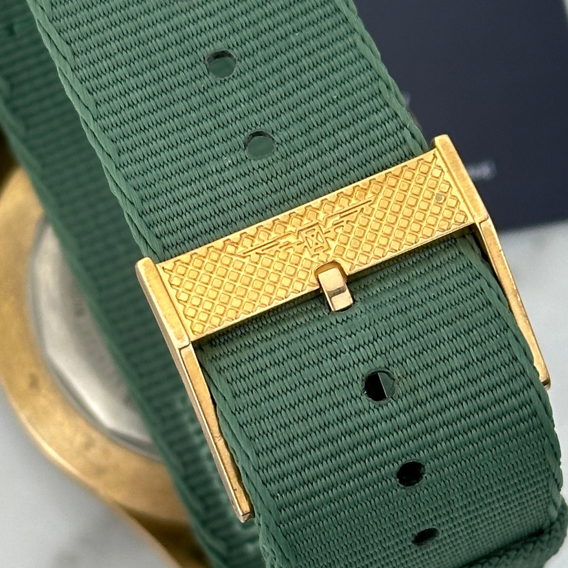 Condition: Very good condition overall, showing only light wear. The bronze case has begun to develop an attractive, even patina. Dial, crystal, and strap remain clean and well preserved.