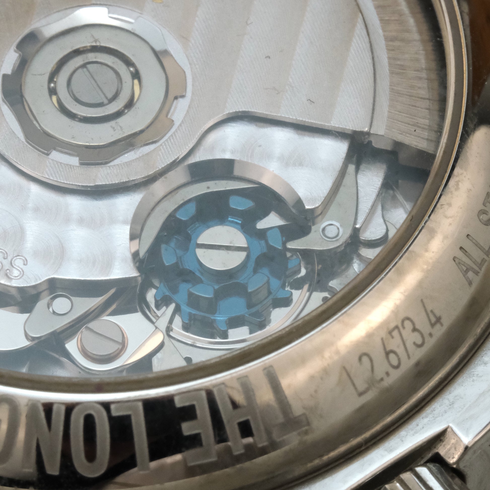 Powering the watch is the Caliber L687, an automatic column-wheel chronograph based on the ETA 7751, modified for better performance and visibility through the sapphire caseback. It comes fitted with a brown alligator strap and deployant clasp.