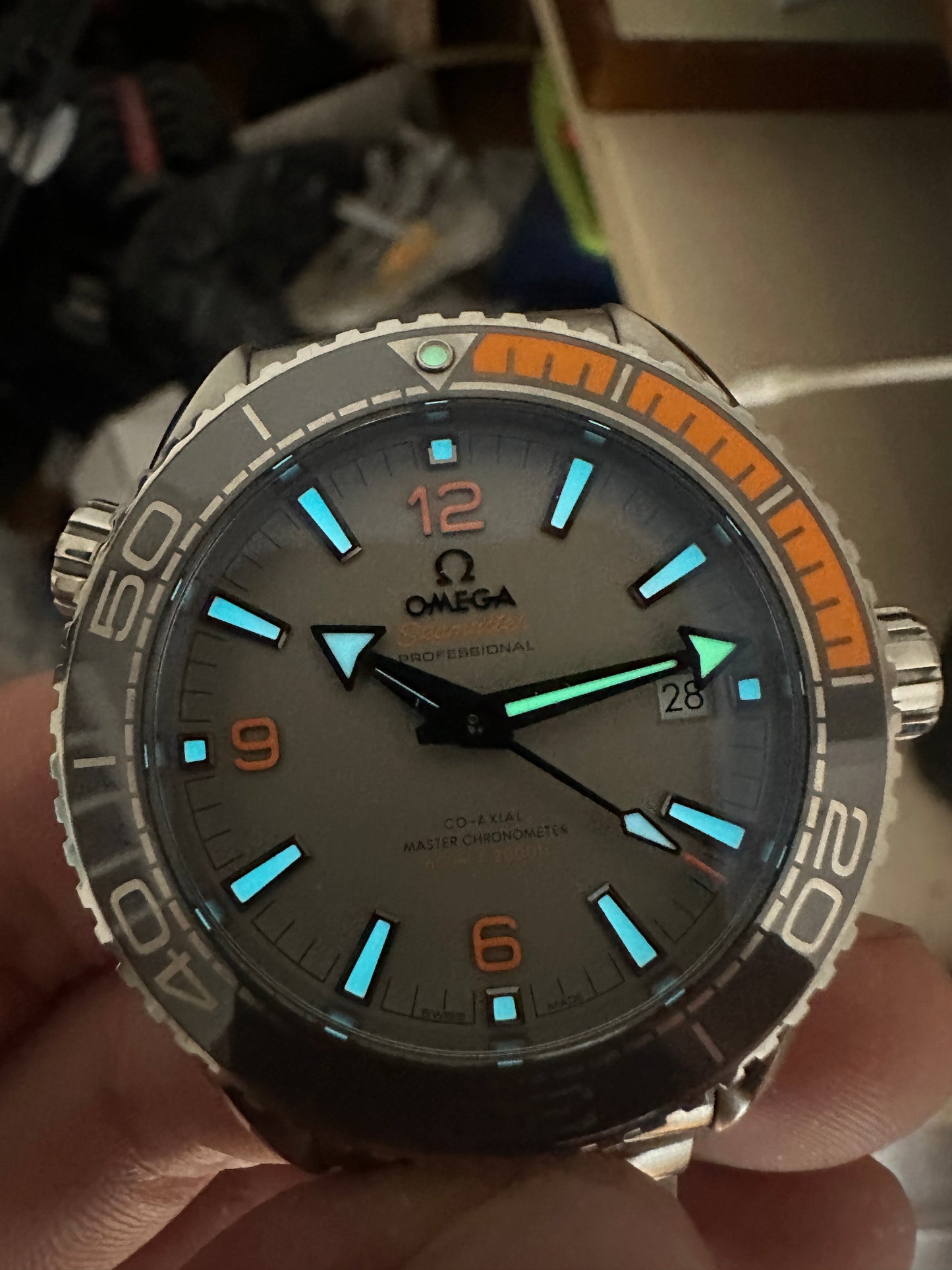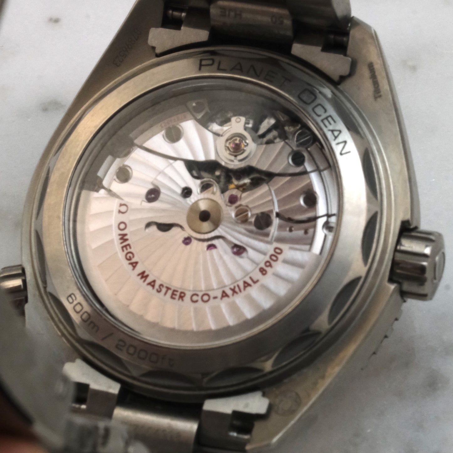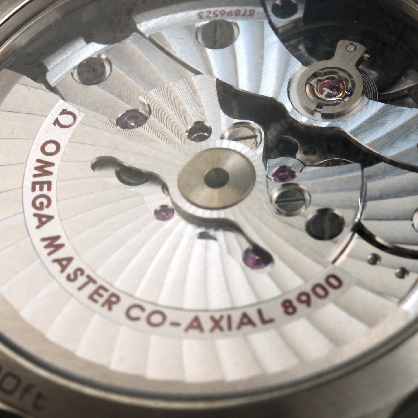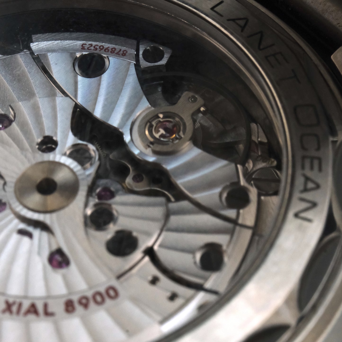 At 43.5mm, this model has strong wrist presence without excessive weight, thanks to its Grade 5 titanium construction. The Co-Axial Master Chronometer caliber 8900 inside is METAS-certified, anti-magnetic to 15,000 gauss, and visible through the sapphire caseback.