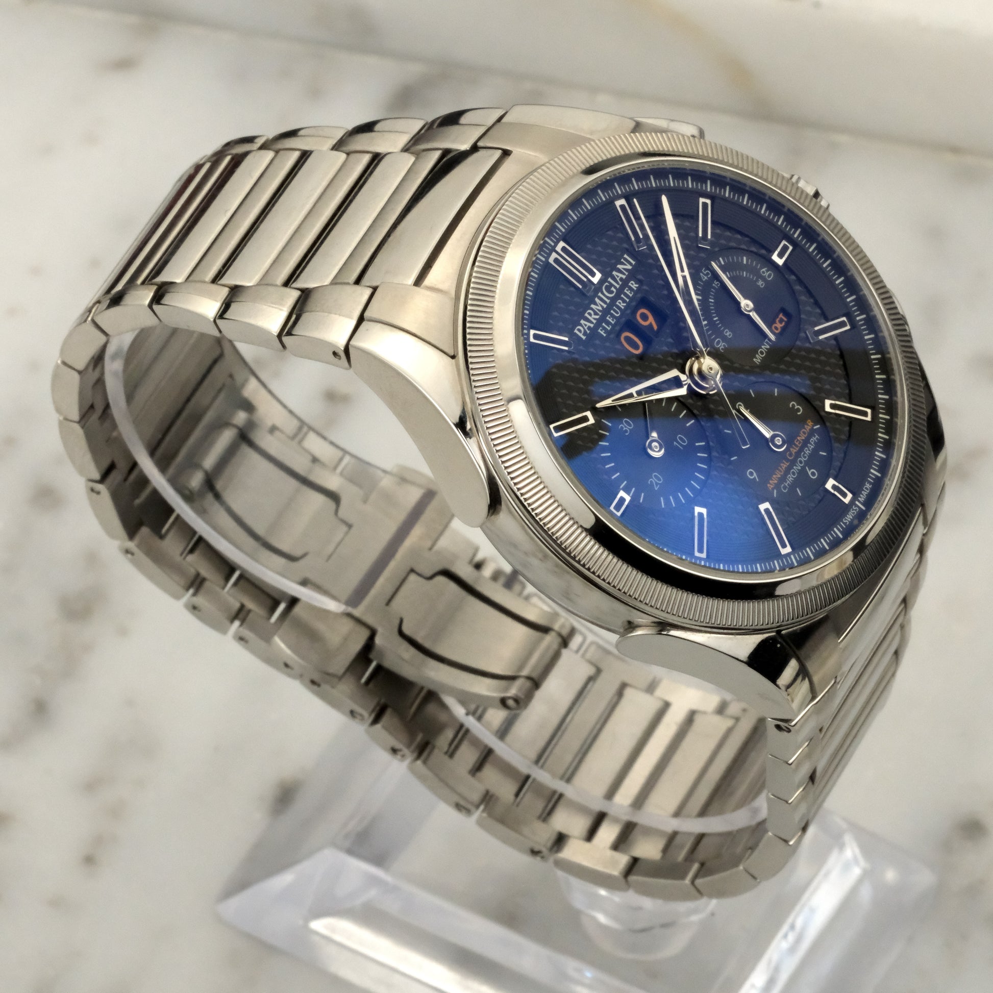 The Watch: The Tonda GT arrived in 2020 as Parmigiani's answer to the integrated-bracelet sport chronograph, this reference being the Annual Calendar/Chronograph version, similar in stance to a Royal Oak Offshore.