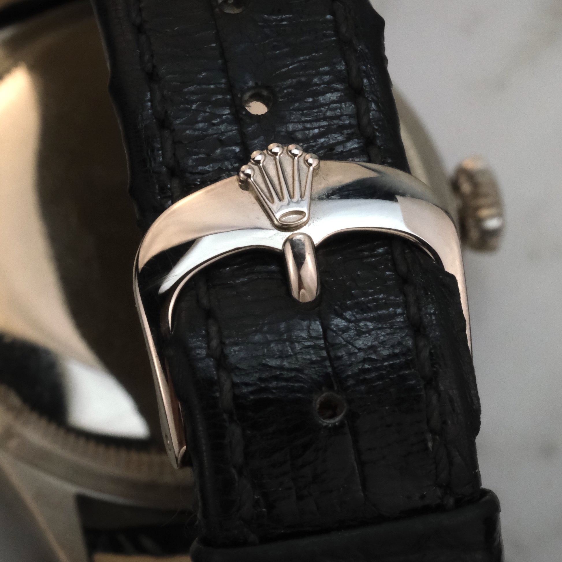 Includes: Watch with original Rolex strap, white gold buckle, and box.